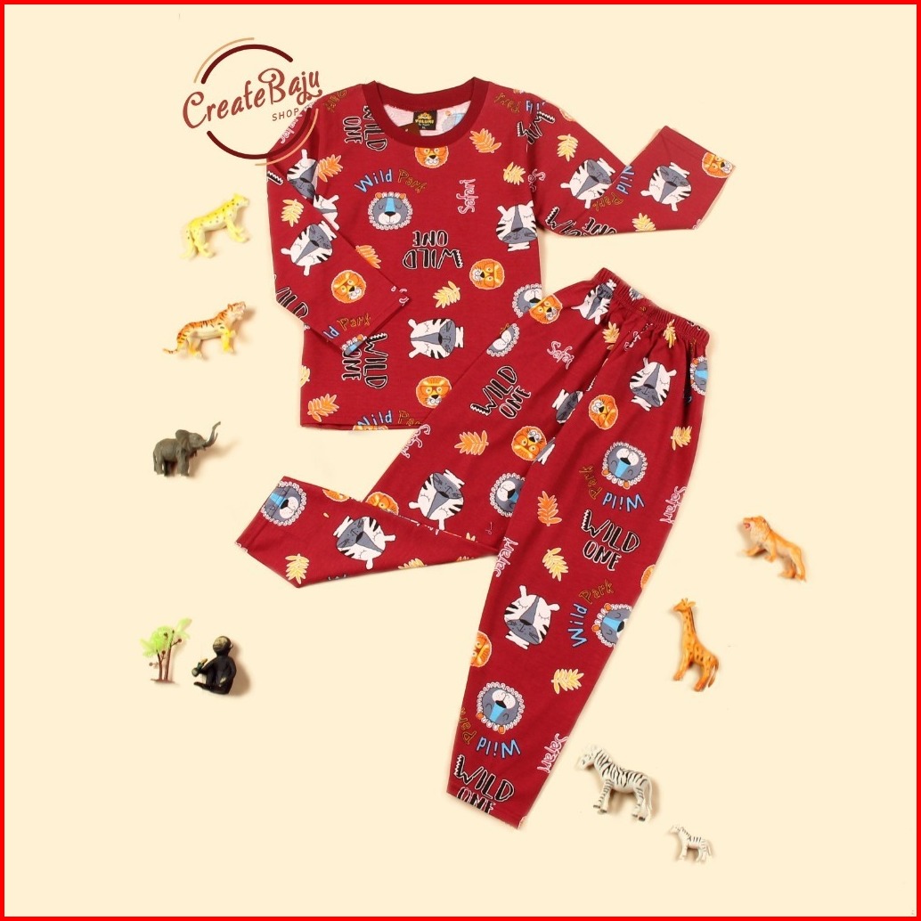 Piyama Kaos Anak Laki 1-7 Tahun Wild Park Baju Tidur Anak Lengan Panjang Terlaris