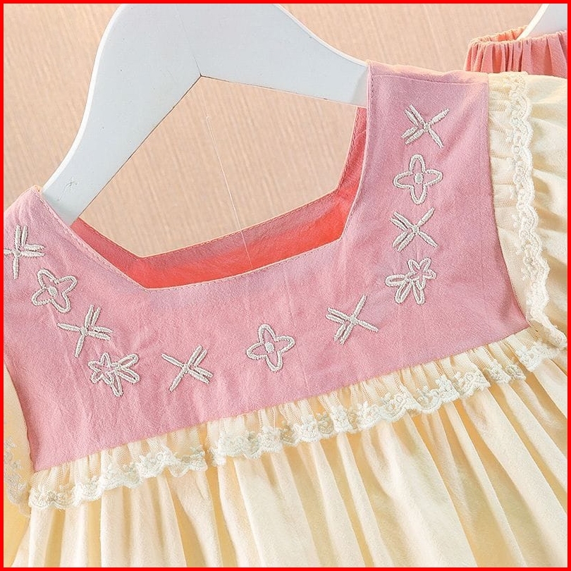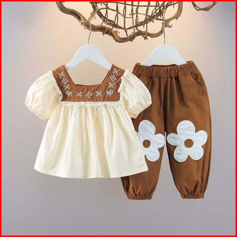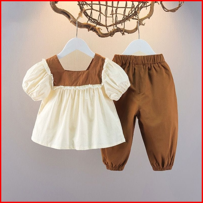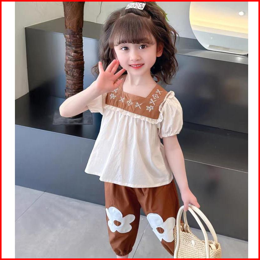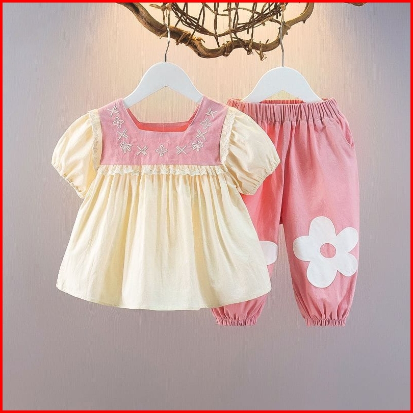 Kfcat Setelan Baju Anak Perempuan Lengan Pendek Bahan Katun Moscrepe Casual Style Usia 1-4 Tahun