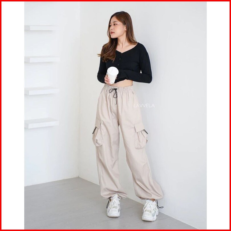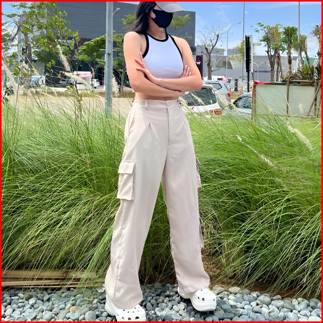 Celana Cargo Wanita Highwaist Premium Jumbo Cargo Pants Wanita Terbaru Celana Kargo Wanita Krem