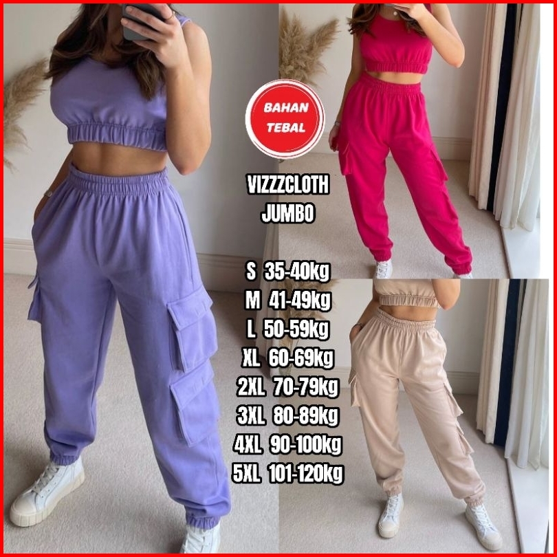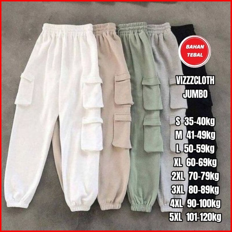 Celana Panjang Wanita Joger Kargo Tiga Saku Kempol Wanita Korean Style Jumbo S M L Xl 2xl 3xl 4xl 5xl
