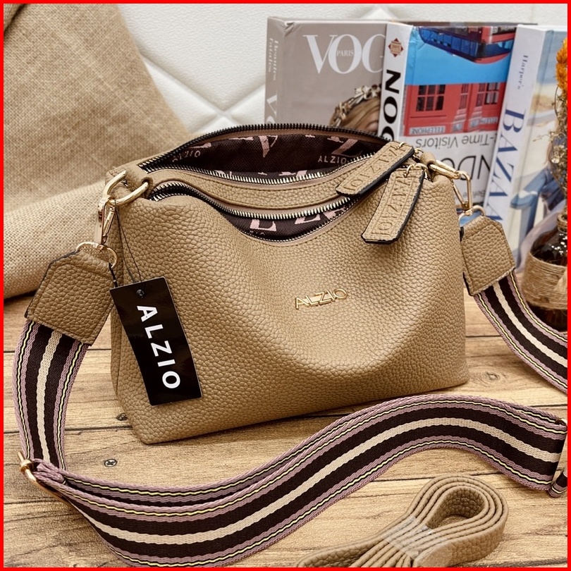 Hanako - Best Seller Tas Wanita Selempang Import - Alzio Sling Bag 2ruang 2rest Double Strap