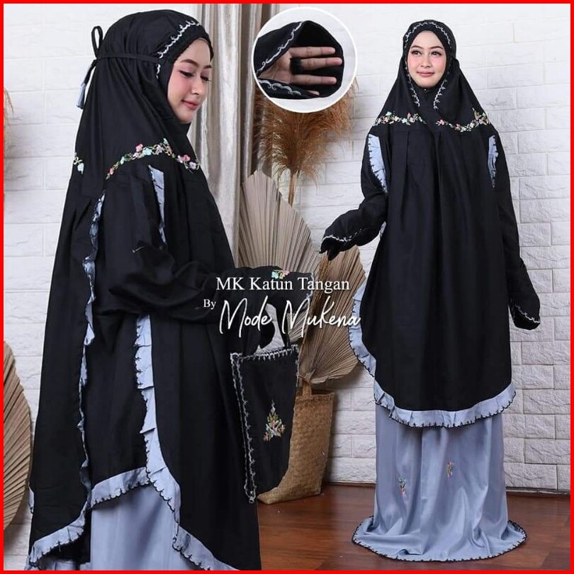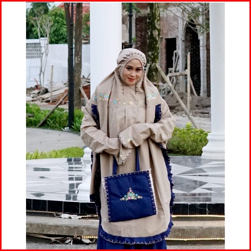 Mukena Berlengan Khonsa Putusan Katun Mikro Renda Bordir Dewasa Jumbo