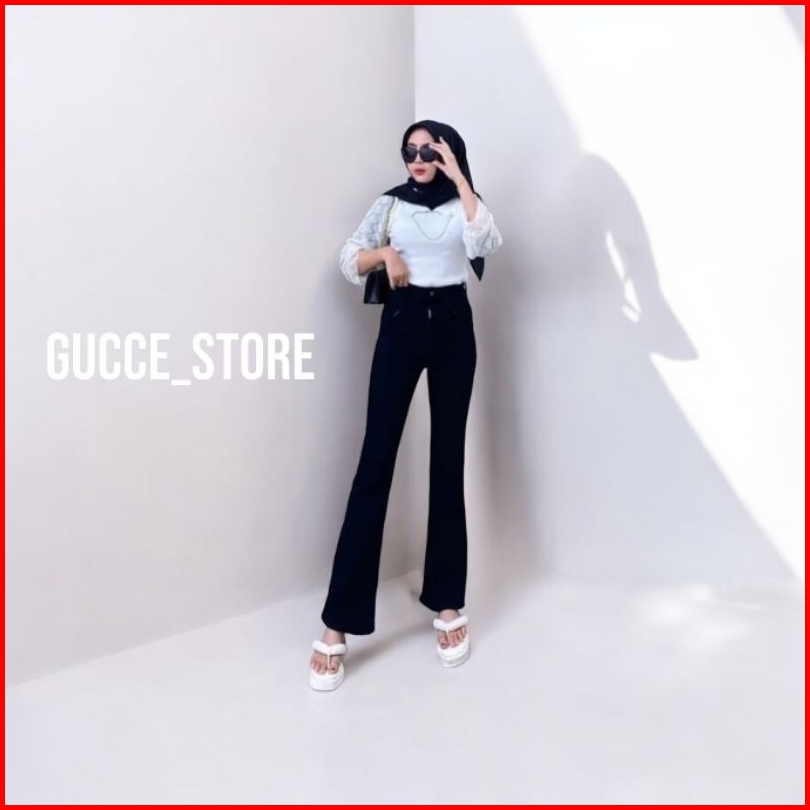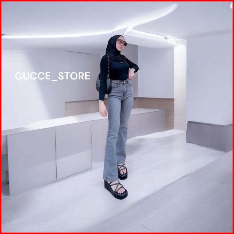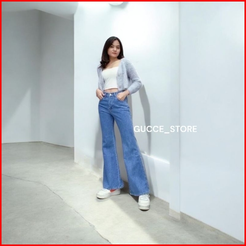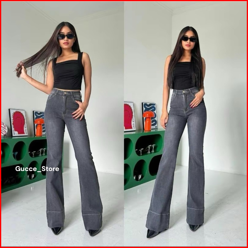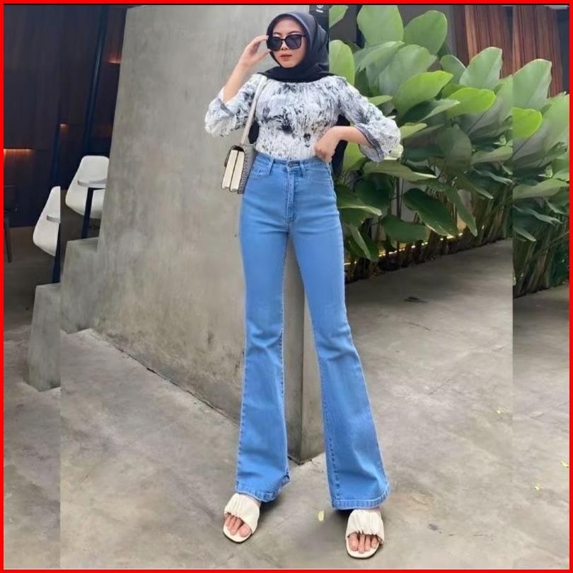 Hw Cutbray Jeans Wanita Celana Highwaist Strecht Korean Style Kekinian Fit Flare Denim Ngaret