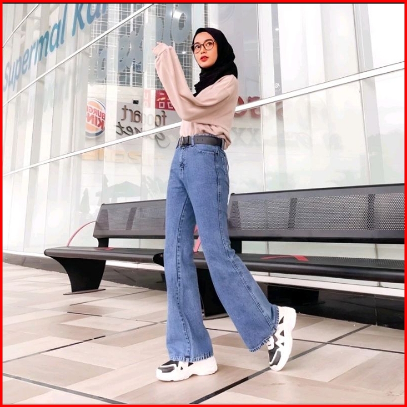 Haighwaist Cutbray Jeans Loose Bahan Stretch Melar Dan Tebal - Celana Jeans Cutbray Wanita Kekinian