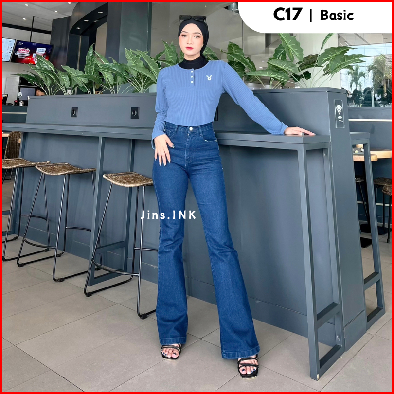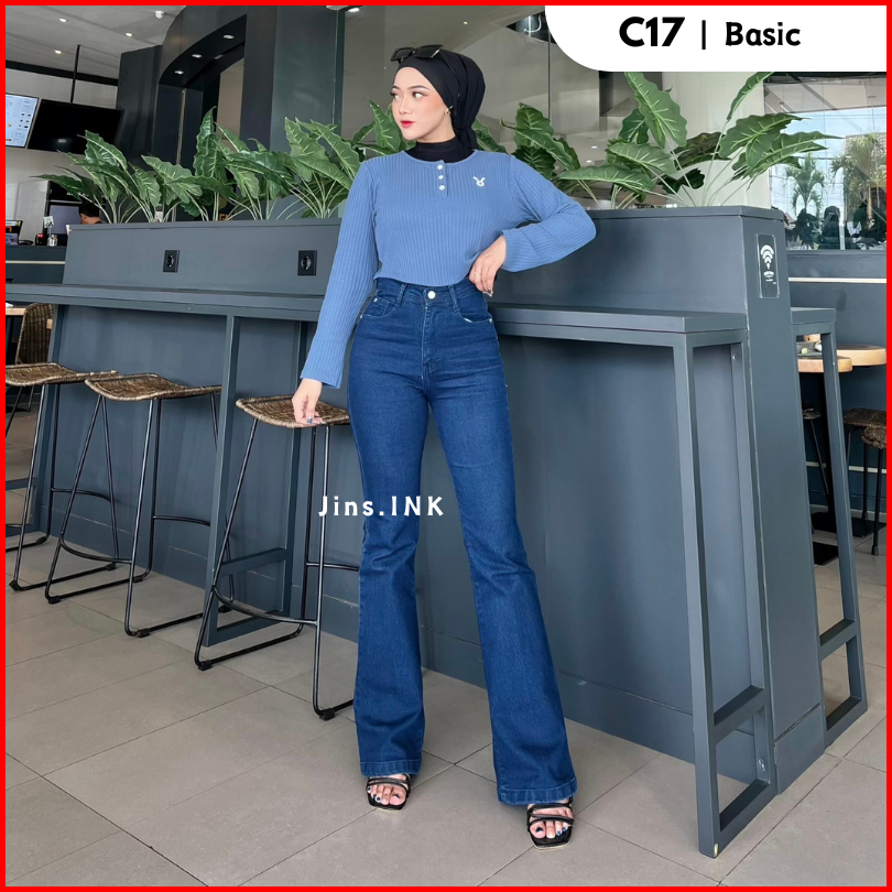 Jins.ink - C16 Celana Cutbray Jeans Wanita Casual Highwaist Long Strech Slim-fitting Vintage