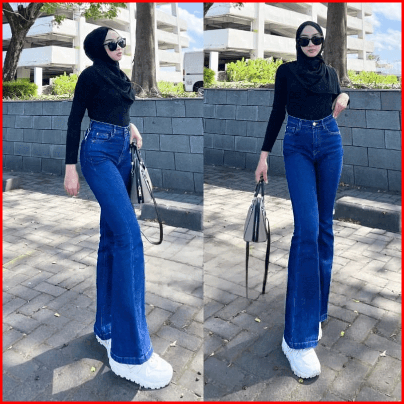 Highwaist Cutbray Jeans Wanita Stretch Panjang Kekinian