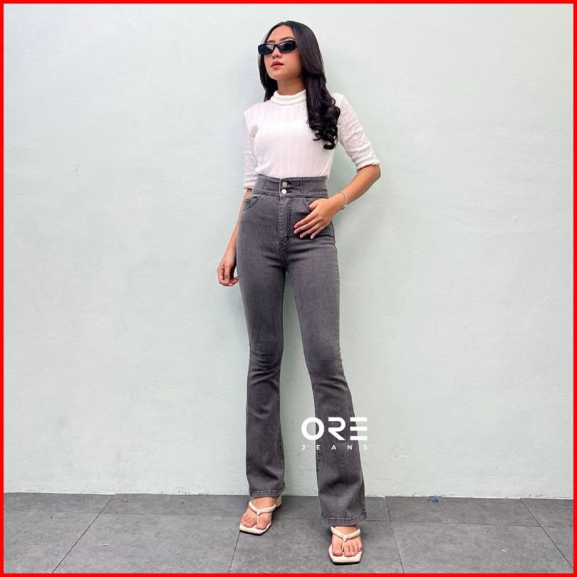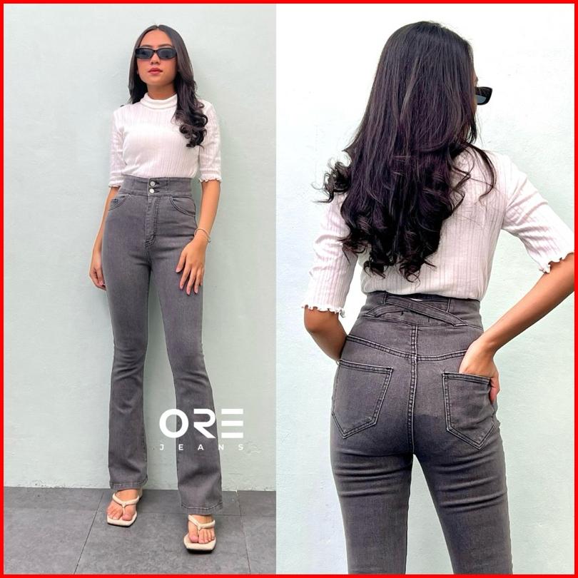 Ore - Pinkam Highwaist Cutbray Jeans Tali Silang Belakang Wanita
