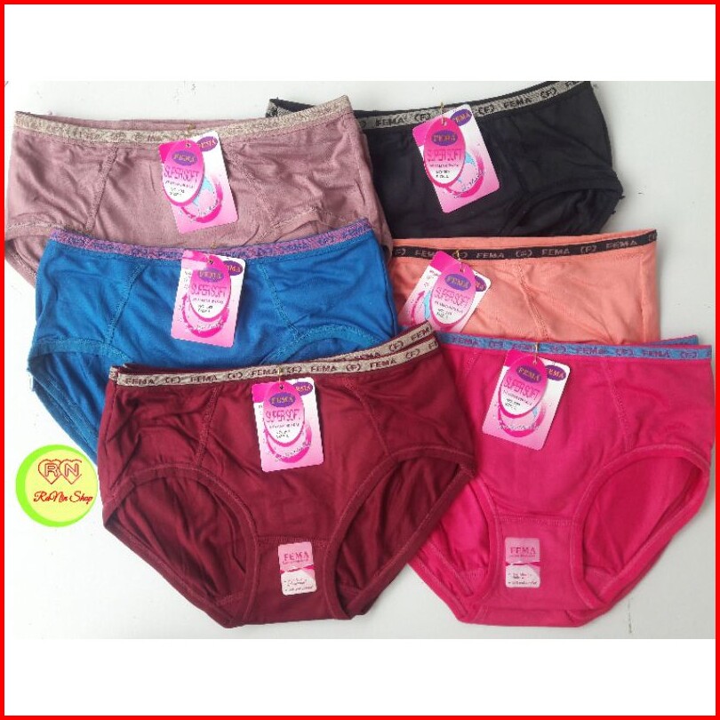 12 Pcs Celana Dalam Wanita Dewasa Fema 393 L Xl Xxl Katun Import Murah Lembut Lusinan