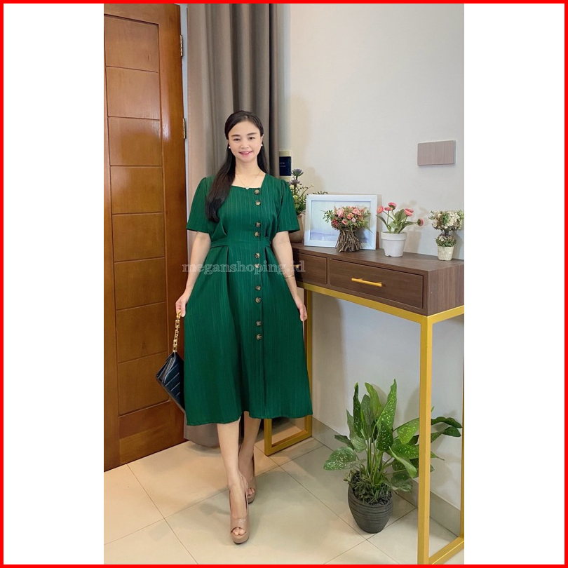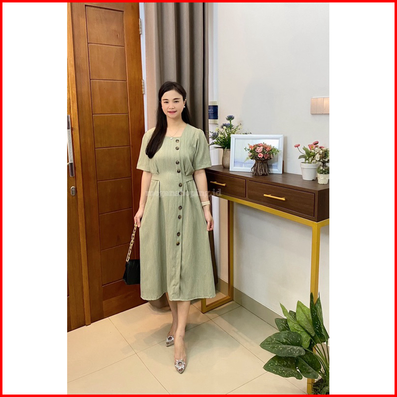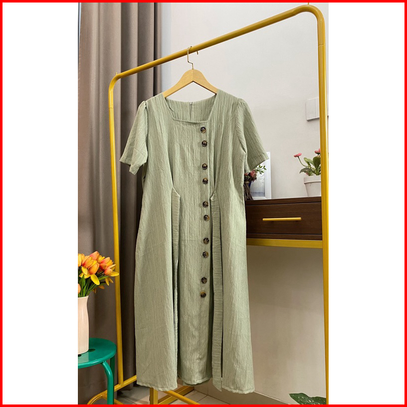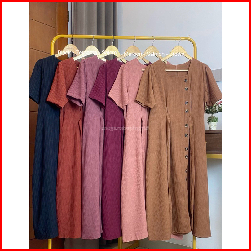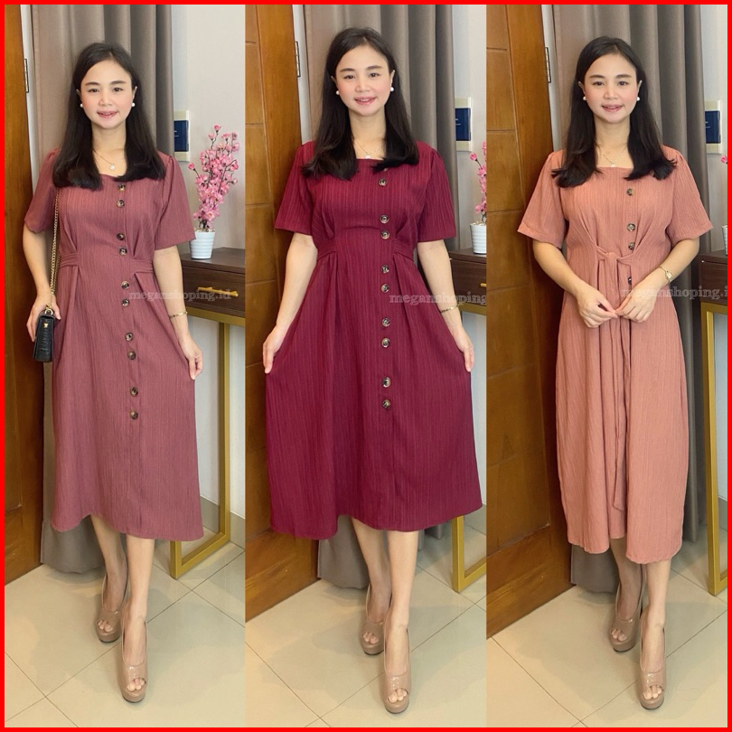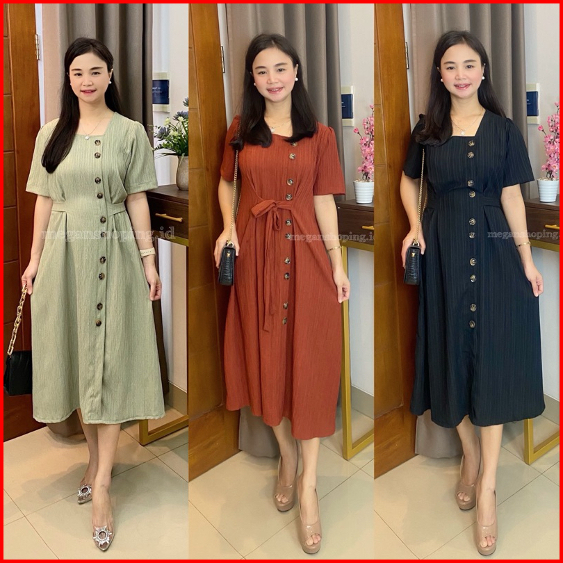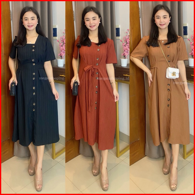 Meganshoping - Raisa Dress Kancing Depan Ada 2 Size Standart Big Size Simple Casual Midi Korea Fashion Terusan Wanita