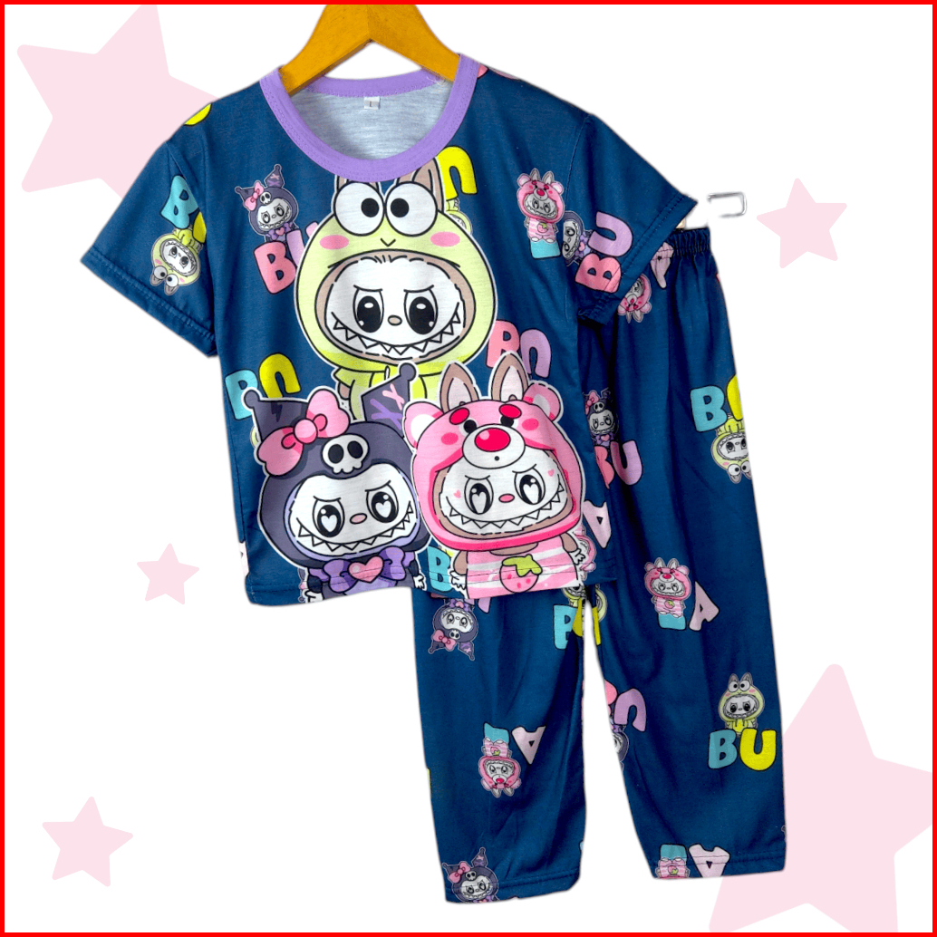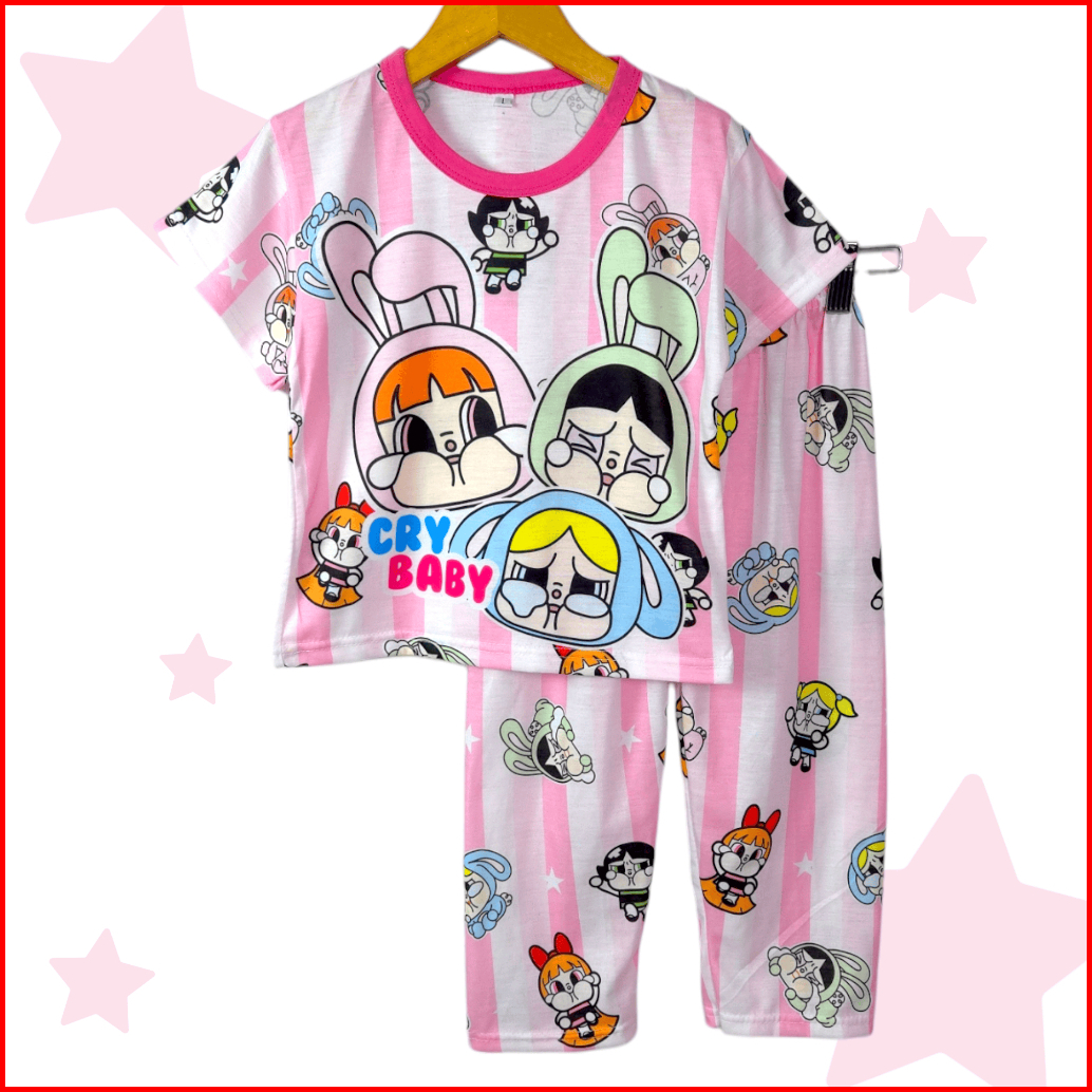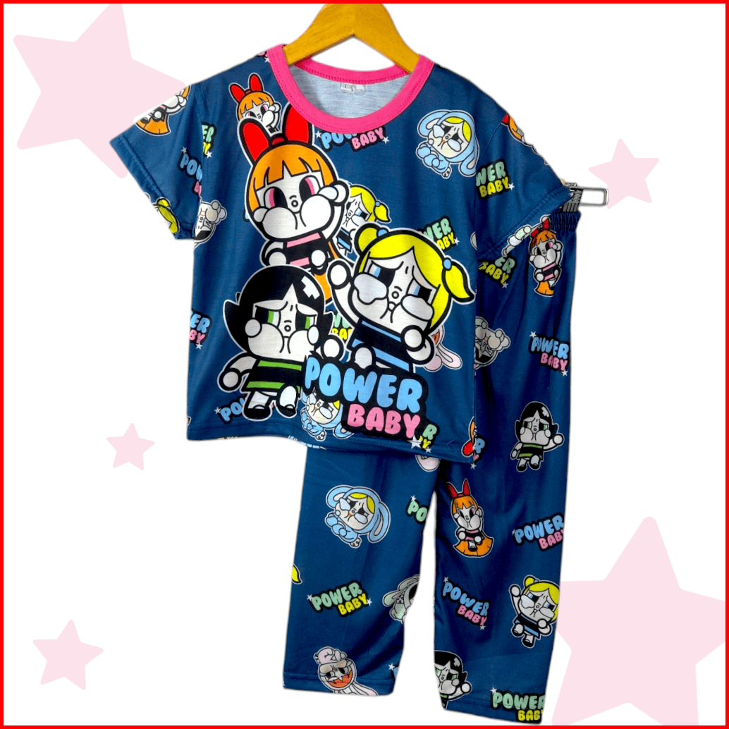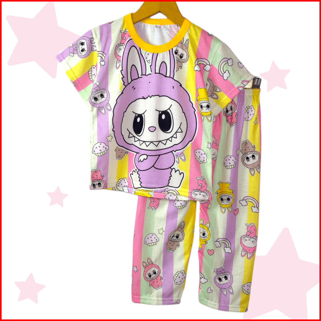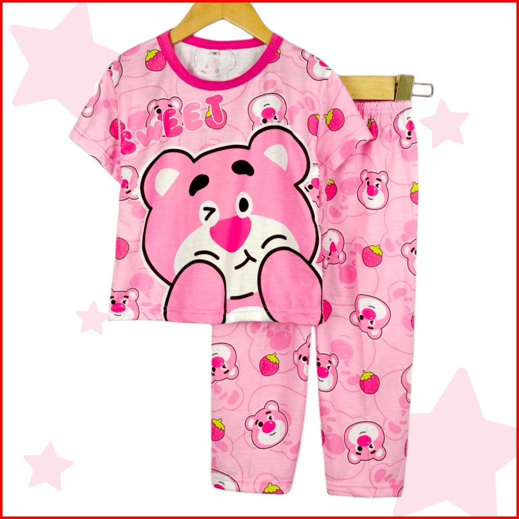 Setelan Baju Tidur Anak Perempuan Lengan Pendek Celana Panjang