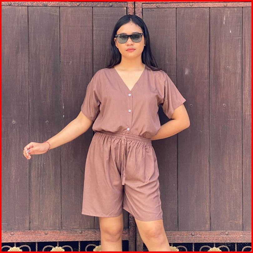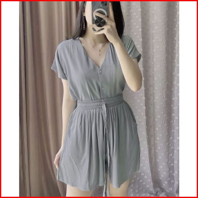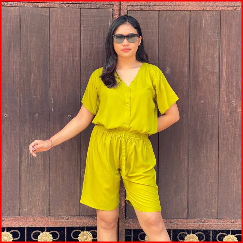 Piyama Rayon Pendek Baju Tidur Wanita Piyama Busui Full Kancing Hidup Babydoll
