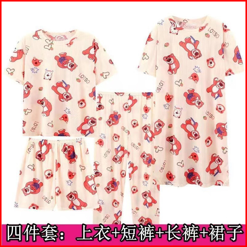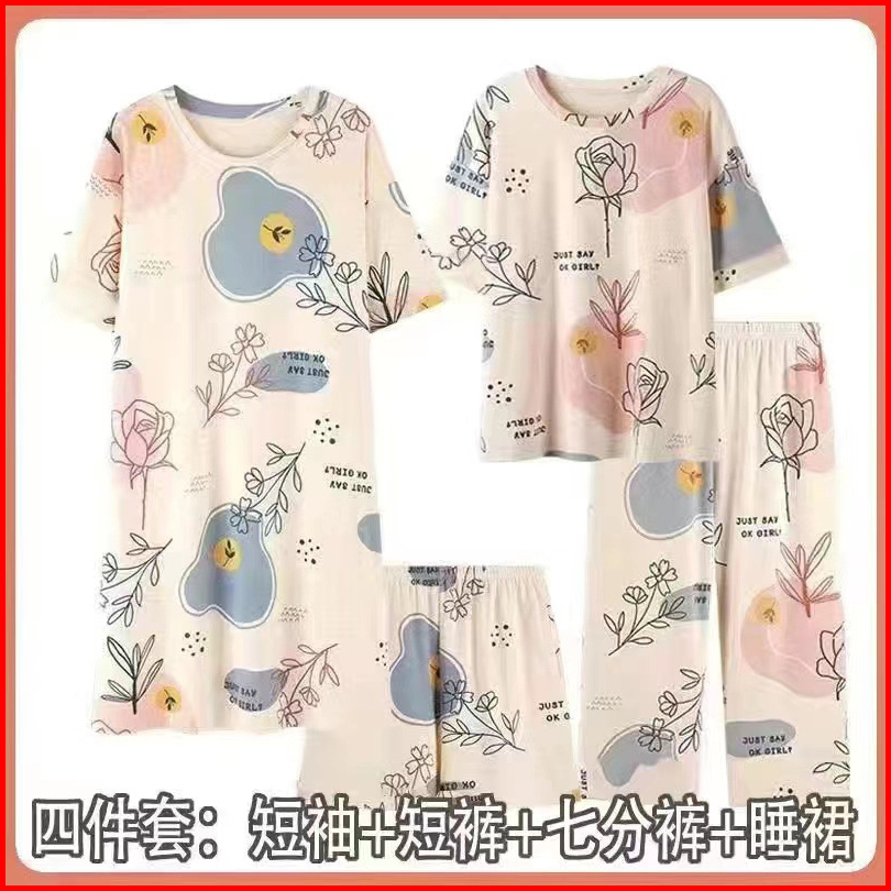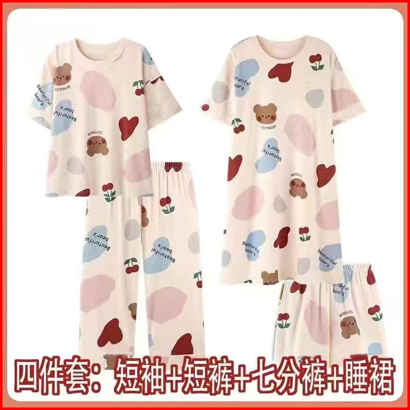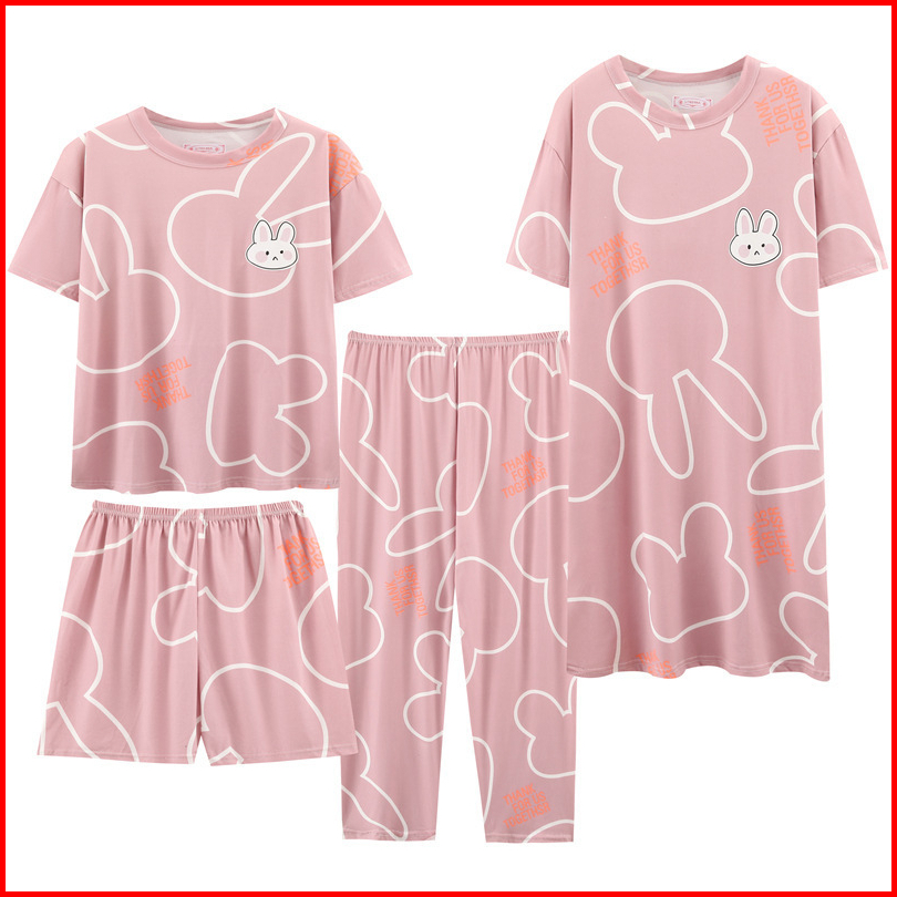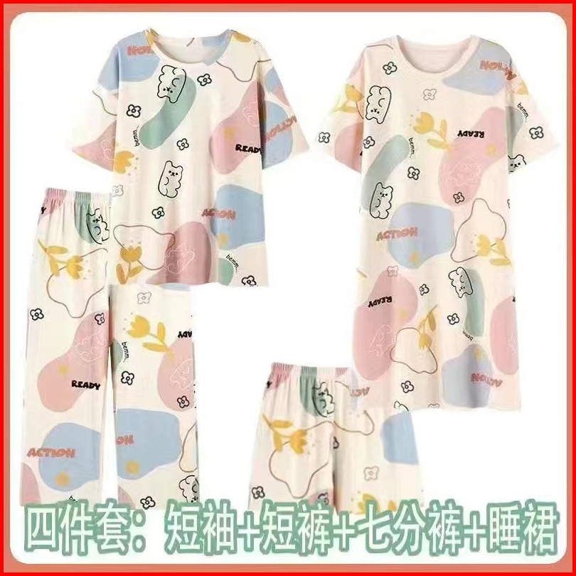 Murhol 4in1 Baju Tidur Set Daster Celana Pendek Celana 3 4 Celana Panjang Wanita Setelan Piyama Cewe