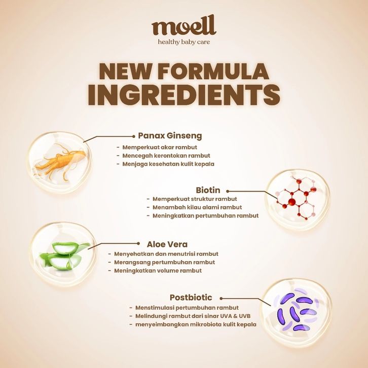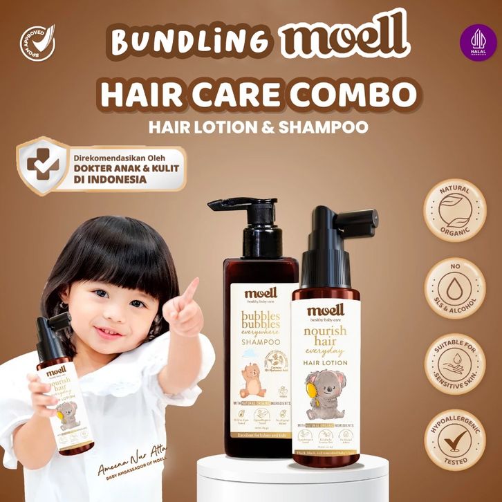 Moell Hair Care Shampoo 185ml & Hair Lotion 100ml With Panax Ginseng, Candlenut Oil, Biotin - Hair Care Rambut Anak