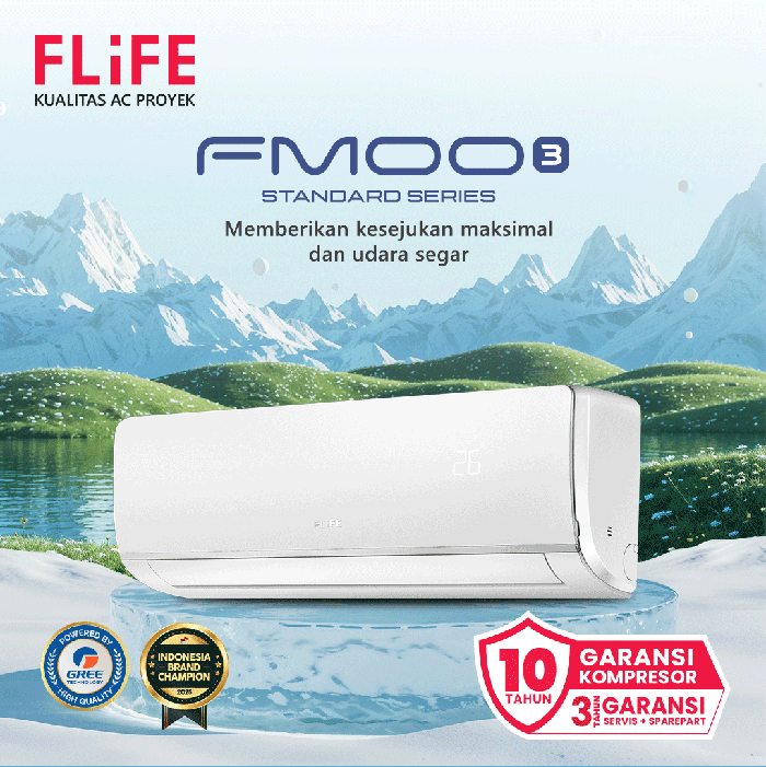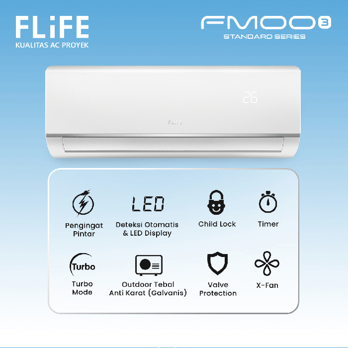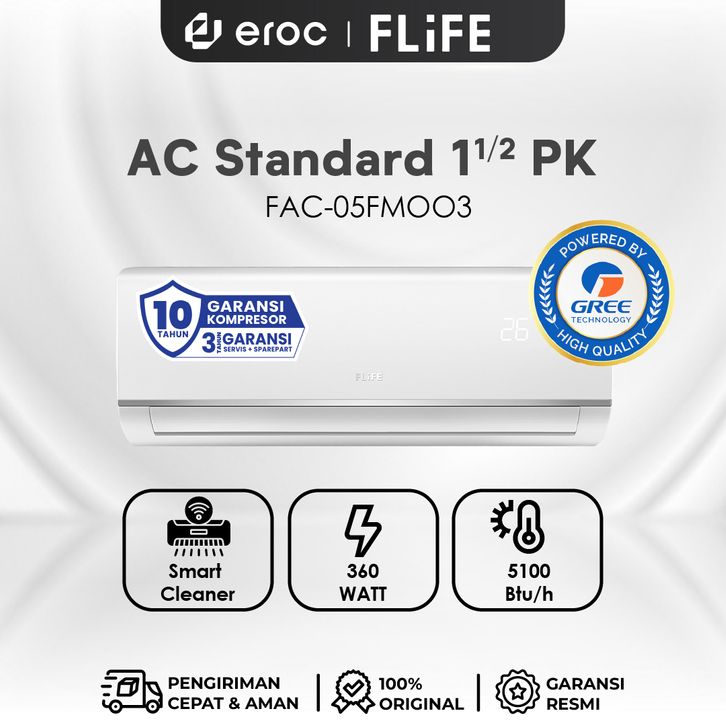 FLIFE - Air Conditioner / AC 1/2pk - Standar 360W - Turbo Mode - LED Display - Smart Cleaner - Model FAC-05FMOO3