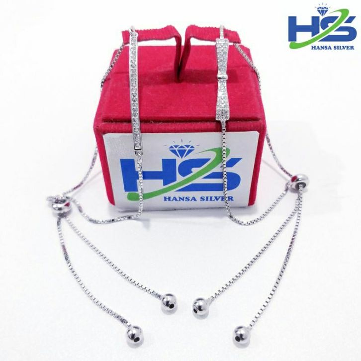 Gelangg Perak Asli Silver 925 Lapis Emass Putih Italy Serut Panjang Dan Pita - Gelangg Perak Anti Karat