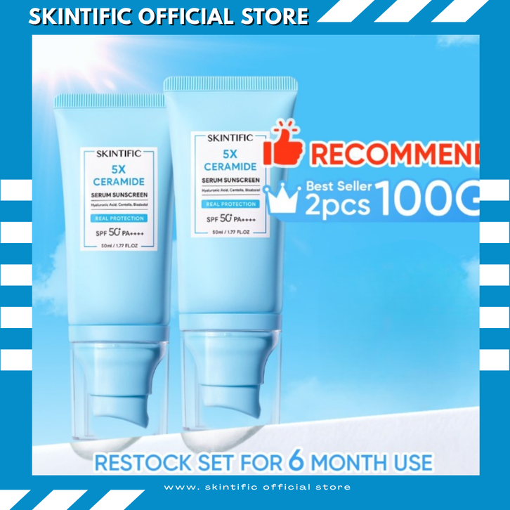 SKINTIFIC OFFICIAL STORE 5X Ceramide Serum Sunscreen 50ml SPF 50+ PA++++ Sun-Repair Invisible Serum 2-in-1 Skincare Suns