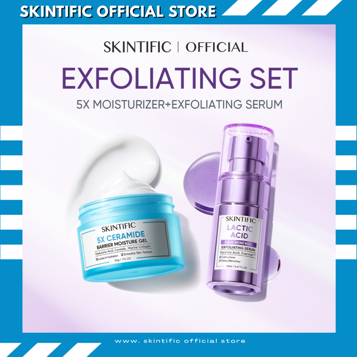SKINTIFIC OFFICIAL STORE 2pcs Paket Skincare Set Lactic Acid Skin Renewal Exfoliating Serum 20ml+5X Ceramide Moisturizer