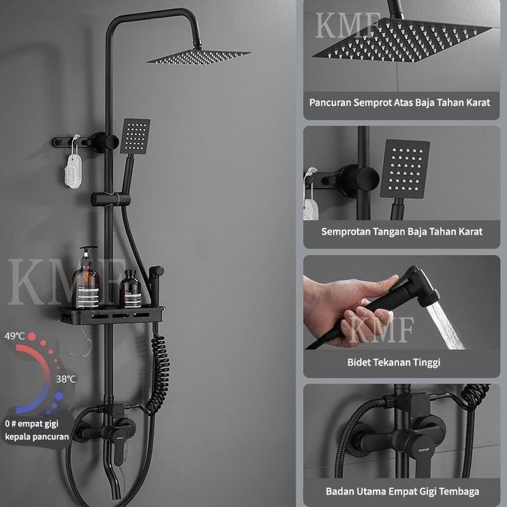 Shower 1 Set Shower Set Kamar Mandi Rain Shower Paket Lengkap Shower Kotak Bulat Bahan Stainless Mandi Shower