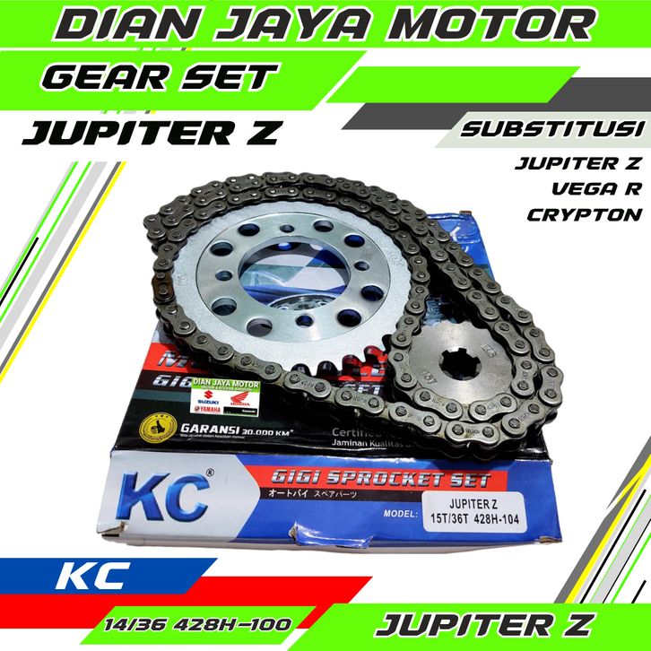 Gear Set Gear Set Girset Jupiter Z Vega r new Crypton Rantai hitam KC 15T 36T 428H-104 Gearset Yamaha Jupiter Z