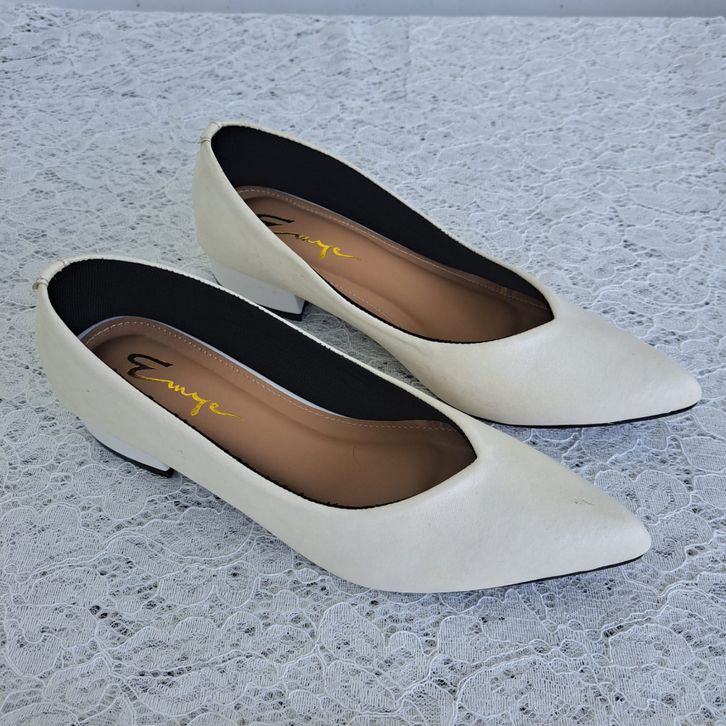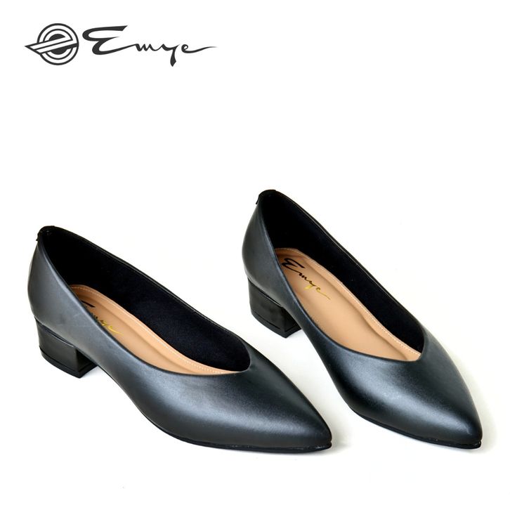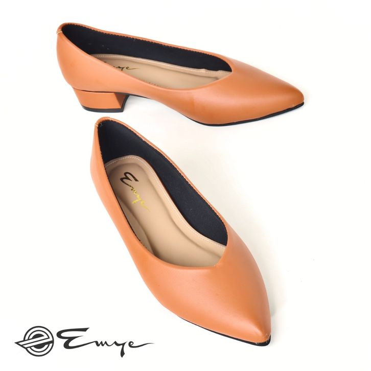 Emye - Sepatu Pantofel Wanita Polos Kulit Sintetis Kantor Kerja Hitam Cream Mocca