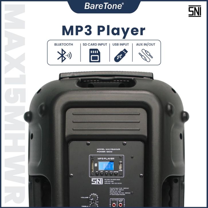 BareTone Speaker Portable MAX15MHWR Speaker Bluetooth 15 Inch /speaker bluetooth /speaker aktif /speaker aktif polytron