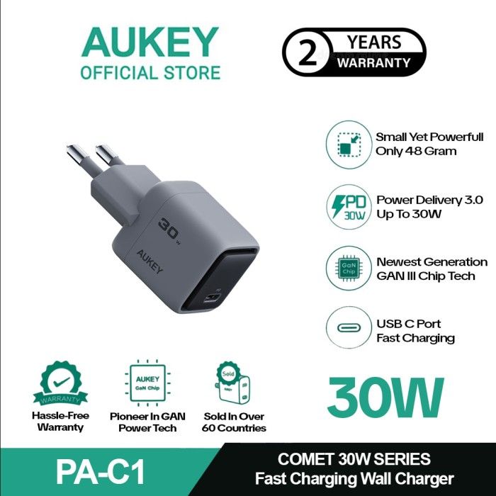AUKEY Charger Type C 30W GAN III PD 3.0 PPS Super Fast Charging Comet 30W Series PA-C1