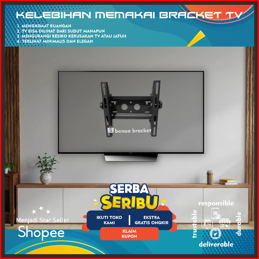 Bracket Tv Led Lcd 32 43 40 24 21 29 17 14 Inch 14 - 43 In Dijamin Cocok 2 Arah Universal Breket Braket Breaket Briket T