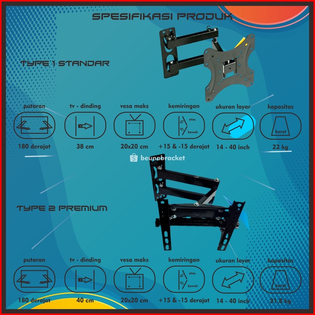 Bracket Tv Led Lcd 32 40 43 24 21 29 17 14 Inch Dijamin Cocok 14 - 40 In 6 Arah Universal Breket Tv Briket Tv Braket Tv