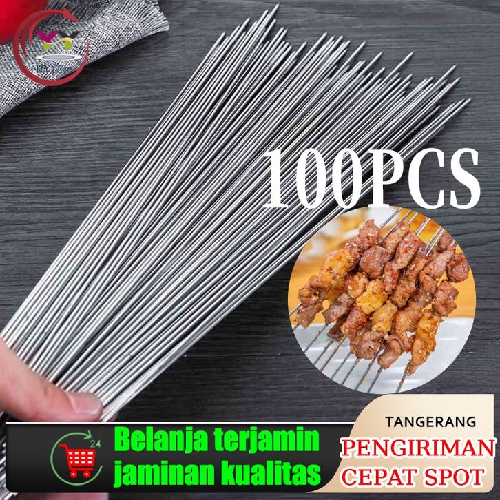 100pcs Tusuk Sate Stainless Steel Tusuk100pcs Tusuk Sate Stainless Steel Tusukan BBQ Needle Reusaban BBQ Needle Reusable
