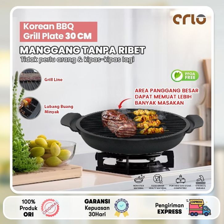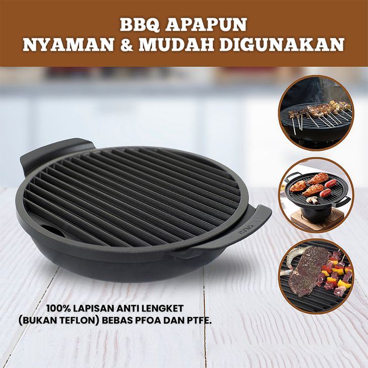 Pemanggang Anti Lengket Bakaran Sate Pemanggang Anti Lengket Bakaran Sate CRIO KOREAN BBCRIO KOREAN BBQ Grill Plate 30cm