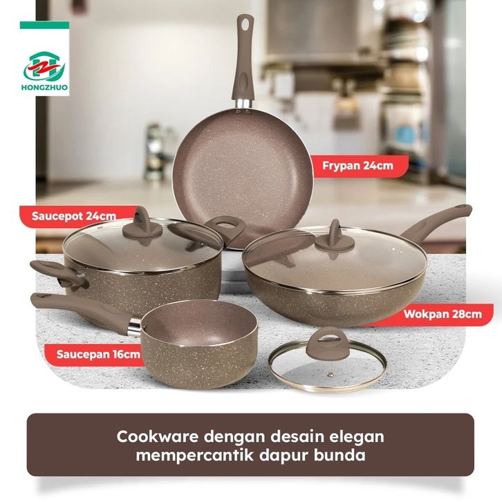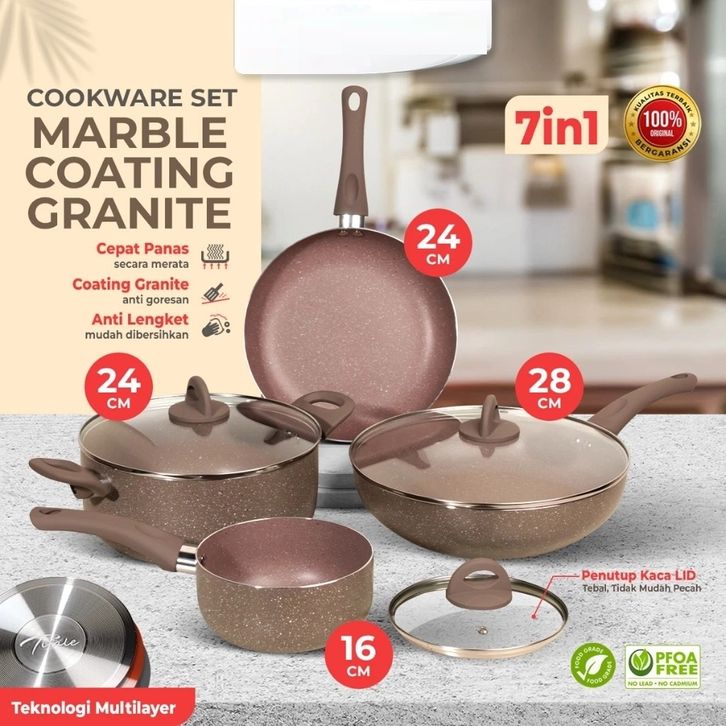 Tifale by Hongzhuo Brown Granite granit Coklat Antilengket Peralatan Masak Dapur 7PCS Untuk Semua Kompor Panci Wajan