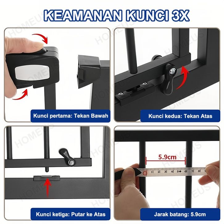 Penghalang Pintu Bayi Pagar Homeus Baby Safety Gate Pagar Pintu Bayi Hitam Putih Tangga Bayi Pagar Pengaman Bayi Pintu T