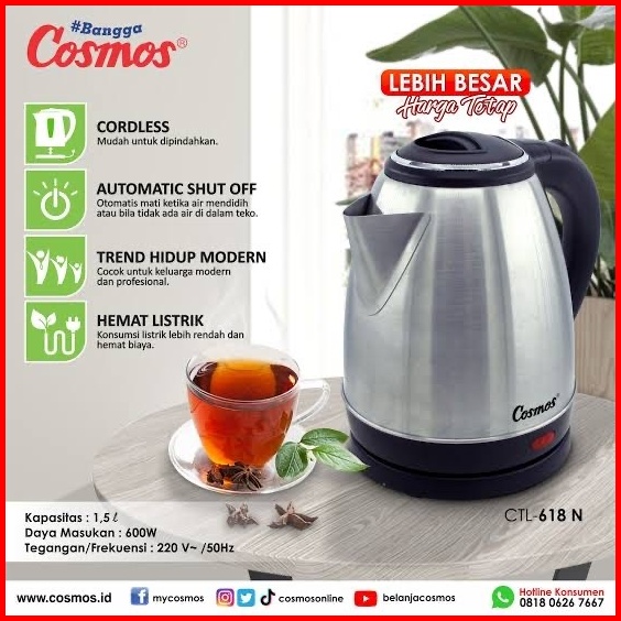 Cosmos Ctl-618 N Teko Listrik 1 5 Liter Stainless