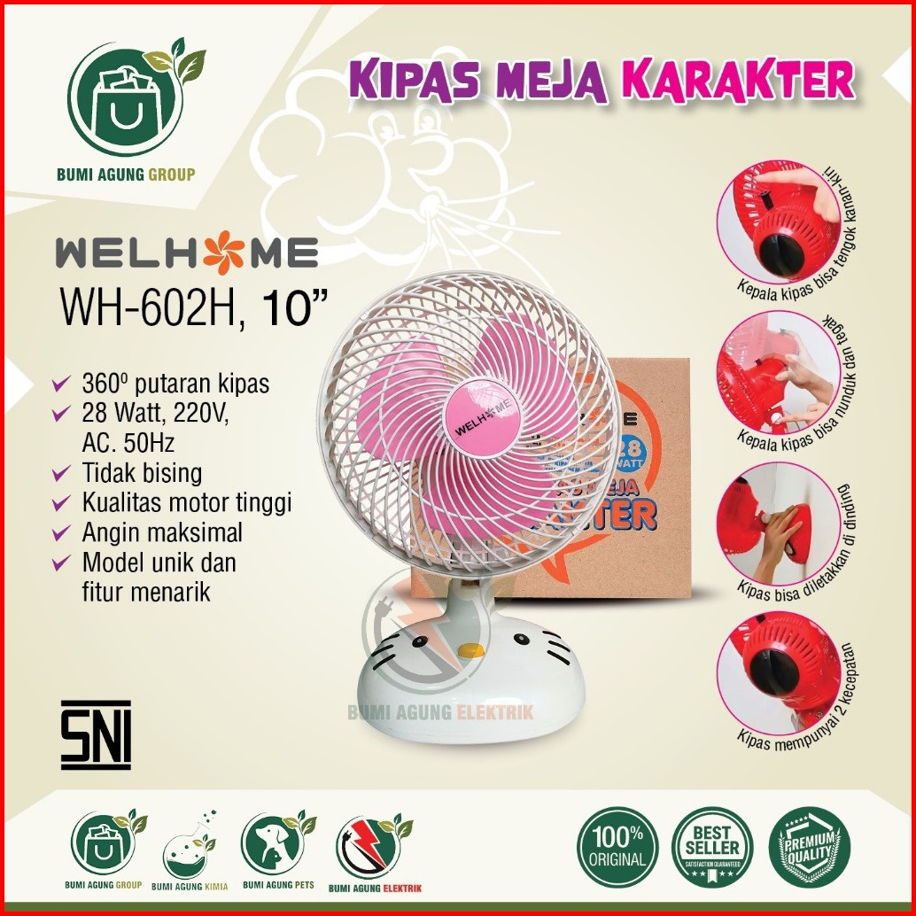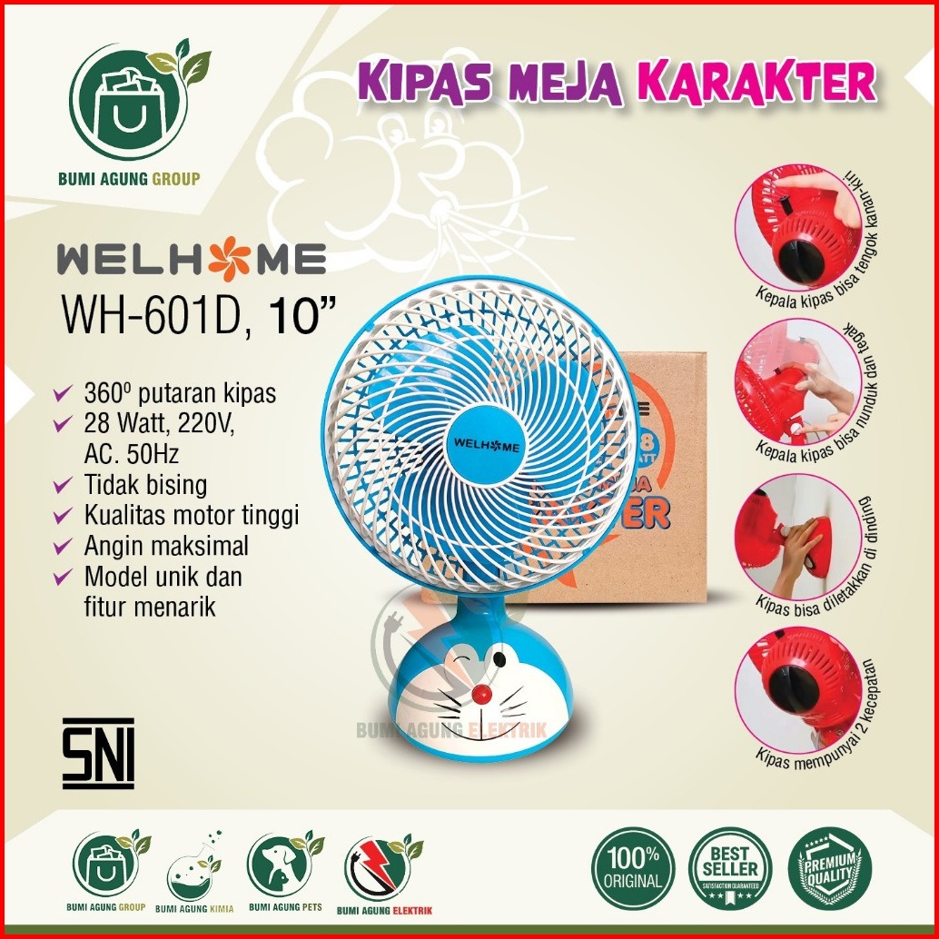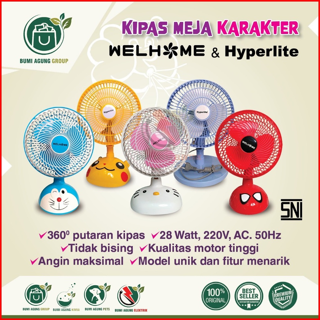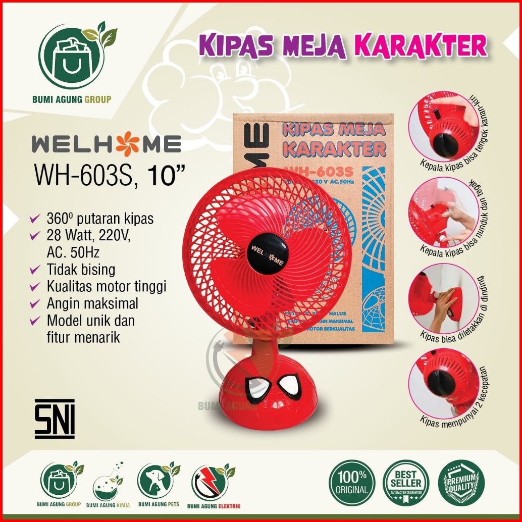 Kipas Meja Karakter Merek Welhome Portable Mini 10 Inch Kipas Dinding Tembok Spiderman Hello Kitty Doraemon Sni