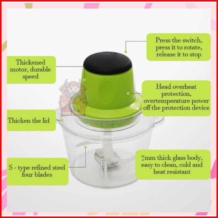 Luckymartid Blender Daging Bumbu 4 Mata Pisau Elektrik 2l