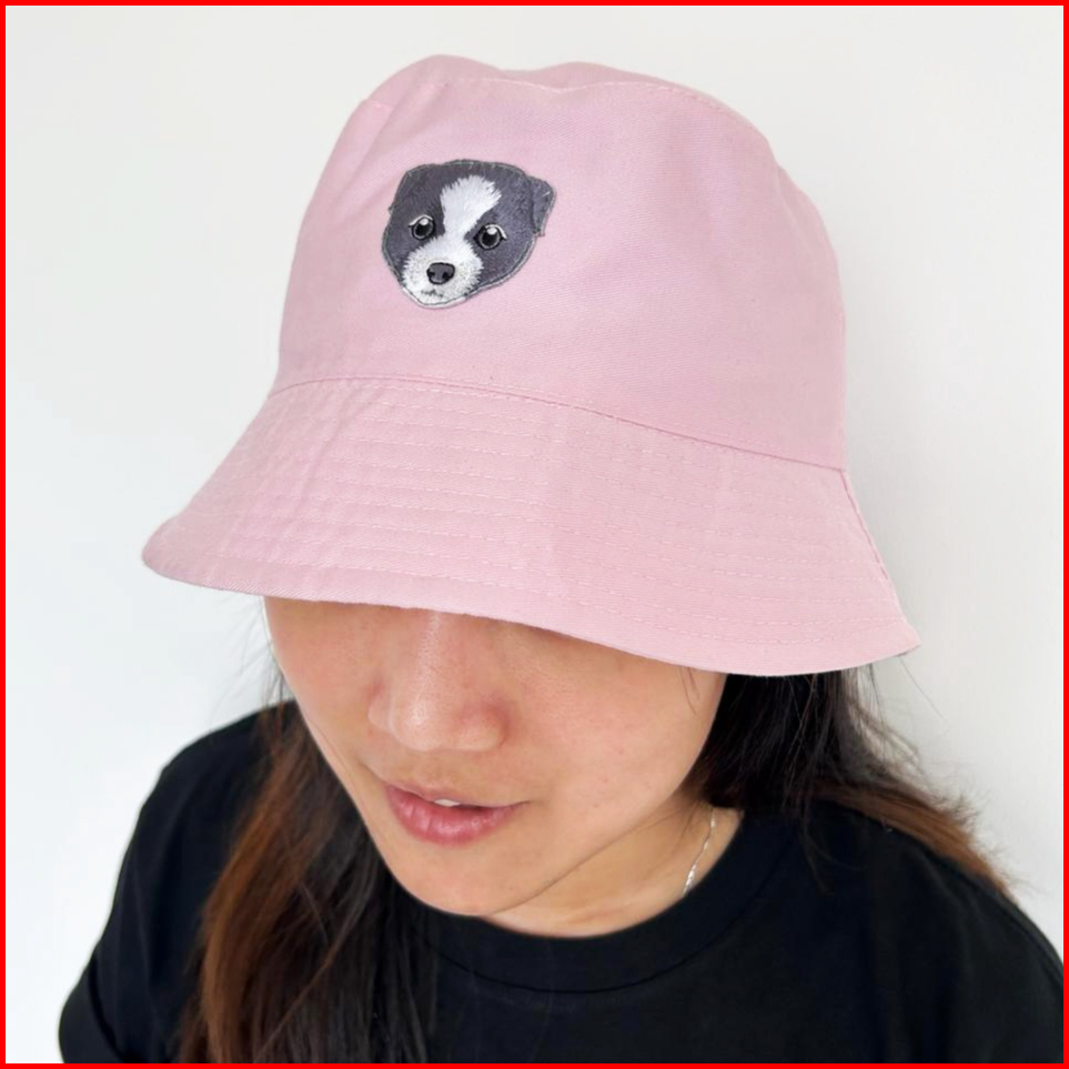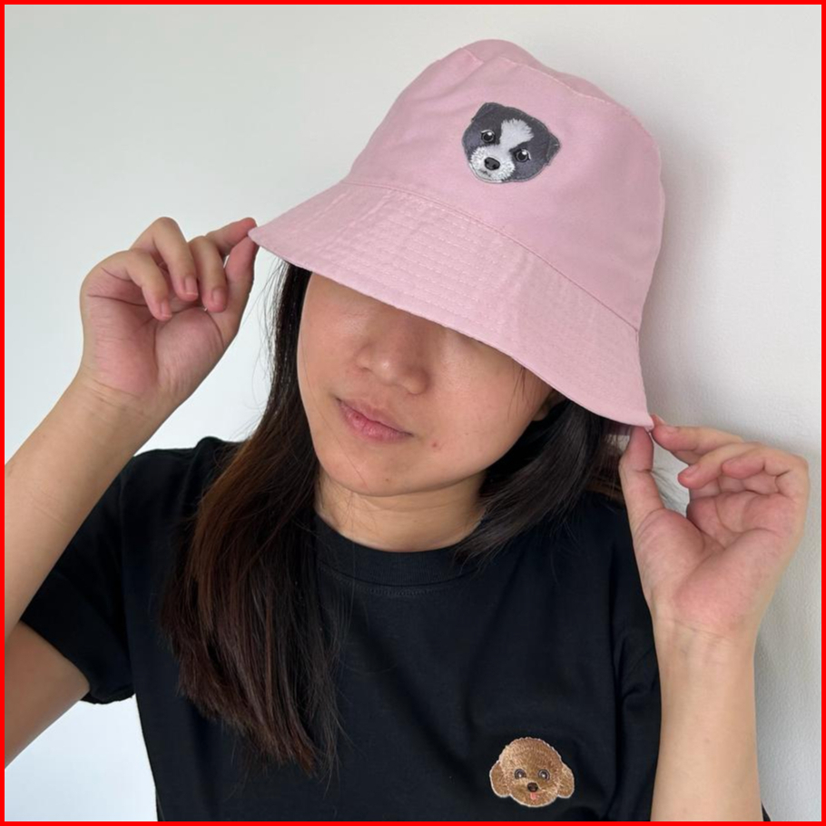 A Cup Of Tee - Topi Bordir Doggy Kucing Bucket Hat Topi Mancing Katun Drill Fashion Korea