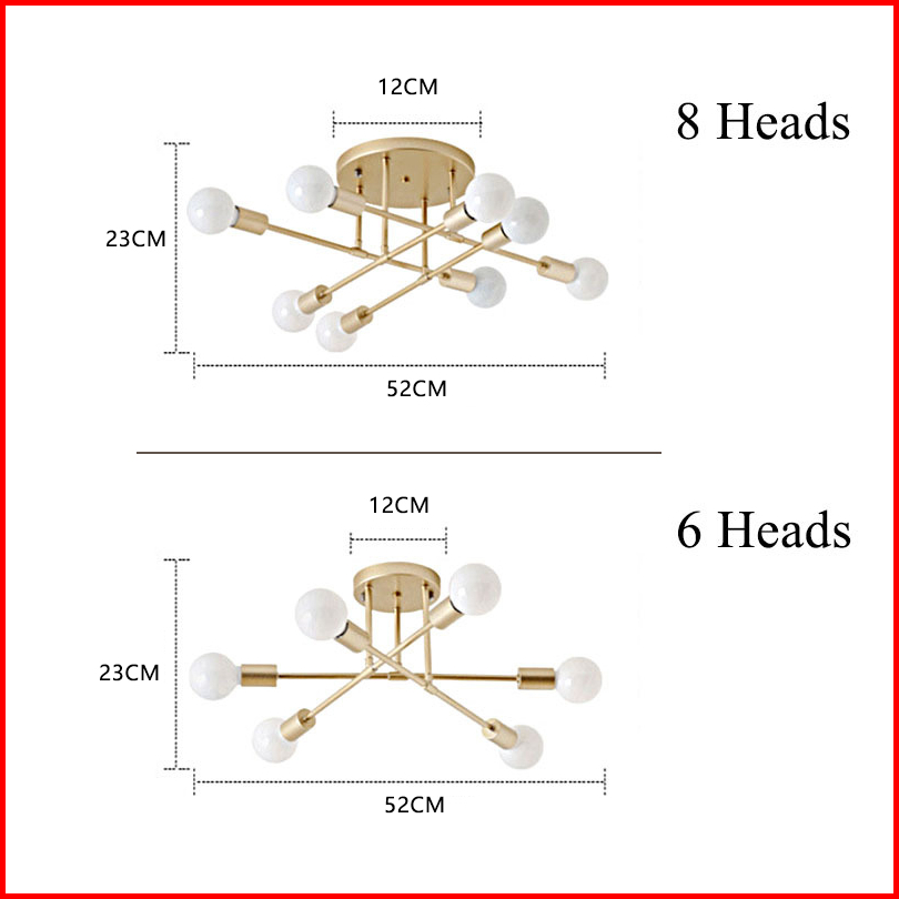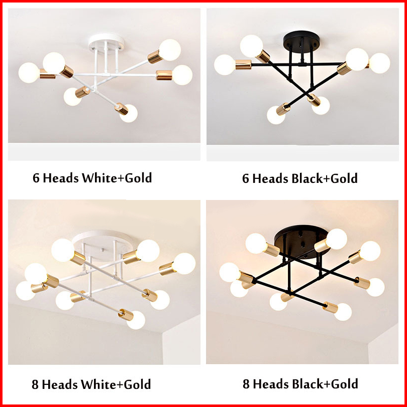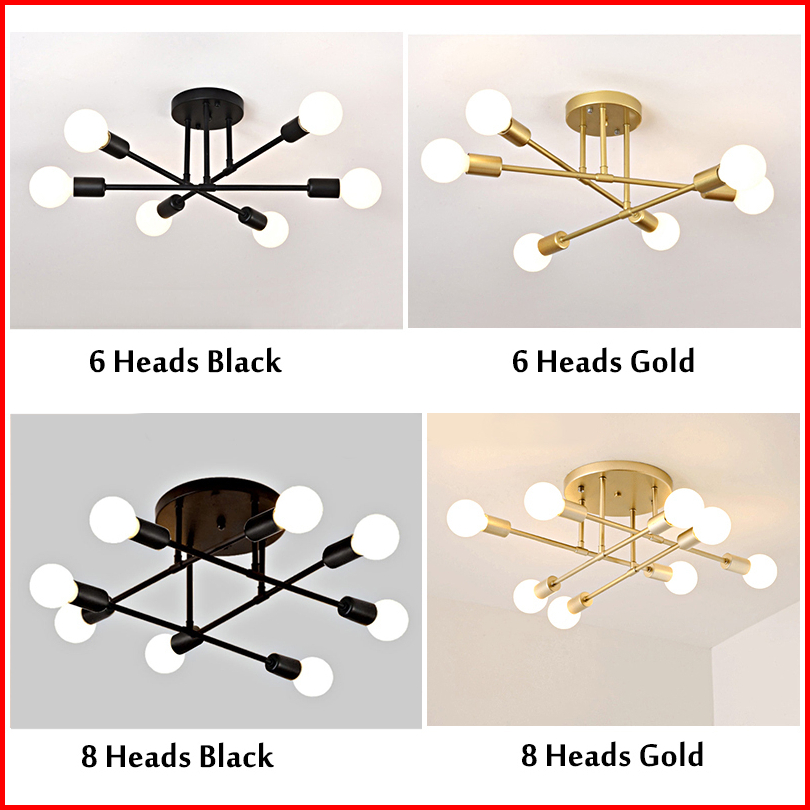 Lampu Plafon 6 8 Led E27 Lampu Gantung Ruang Tamu Modern Minimalist Ceiling Light Warna Golden Black Bohlam Tidak Termas