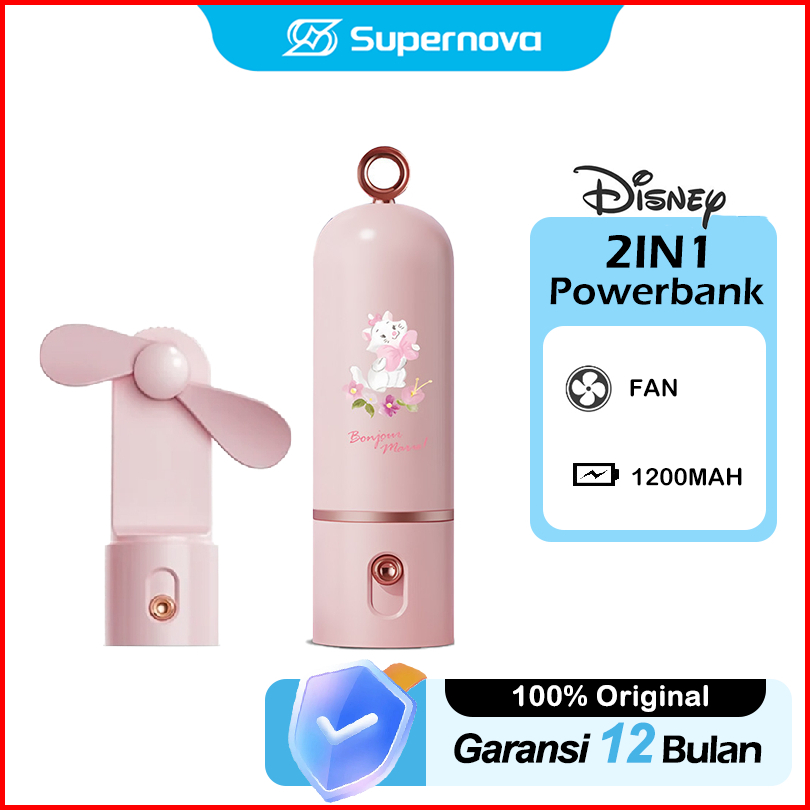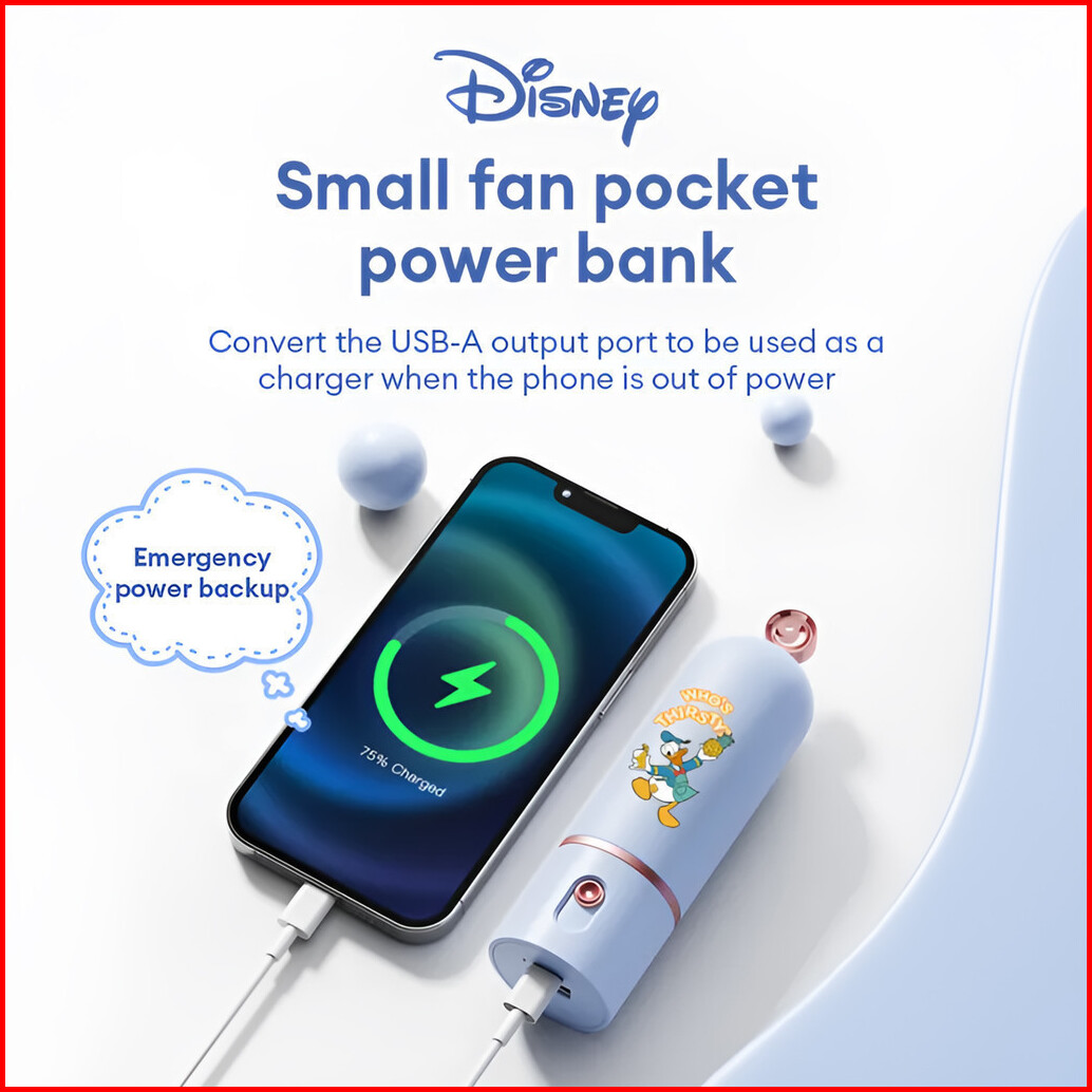 Disney 2in1 Mini Power Bank Kipas Angin Portable Rechargeable Fan 3-speed Powerbank 1200mah