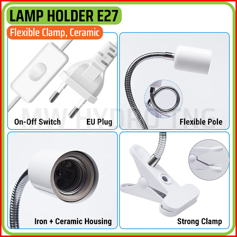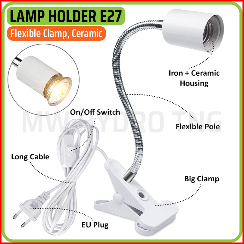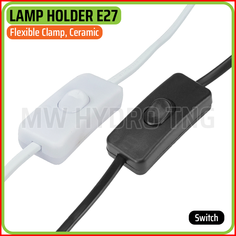 Fitting Jepit Lampu Fleksibel Keramik Dengan Saklar Flexible Ceramic E27 Lamp Holder Clamp Switch