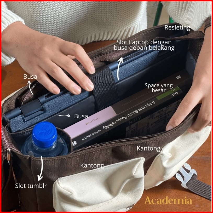 Academia Tas Laptop 14 15 Inch Canvas Slingbag