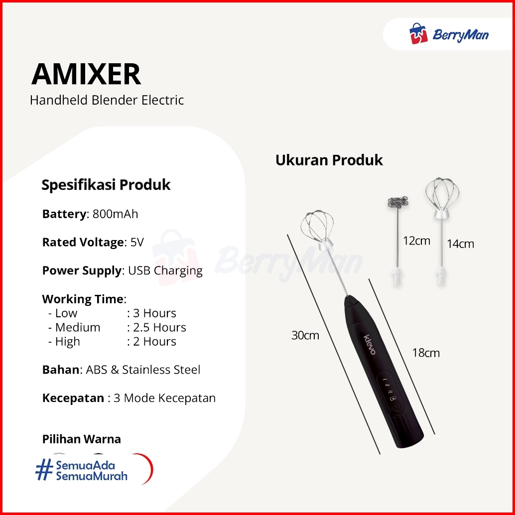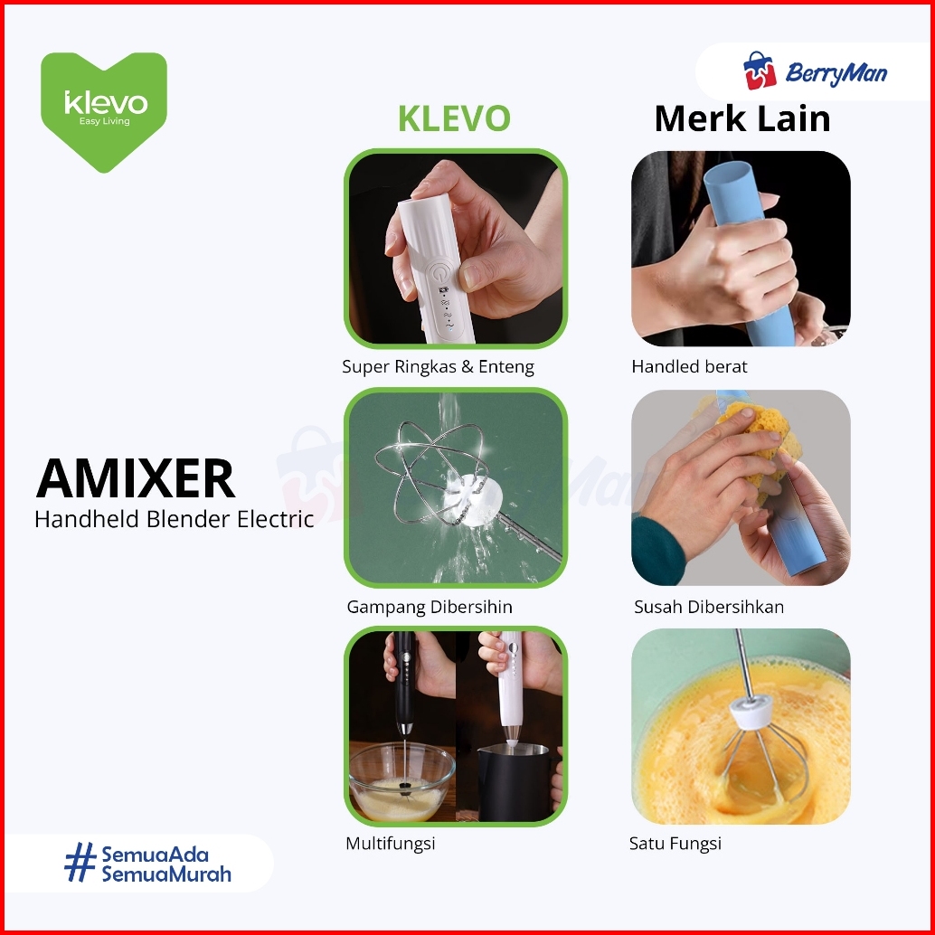 Klevo Amixer Pengocok Telur Pembuih Susu Electric Usb Portable Milk Frother