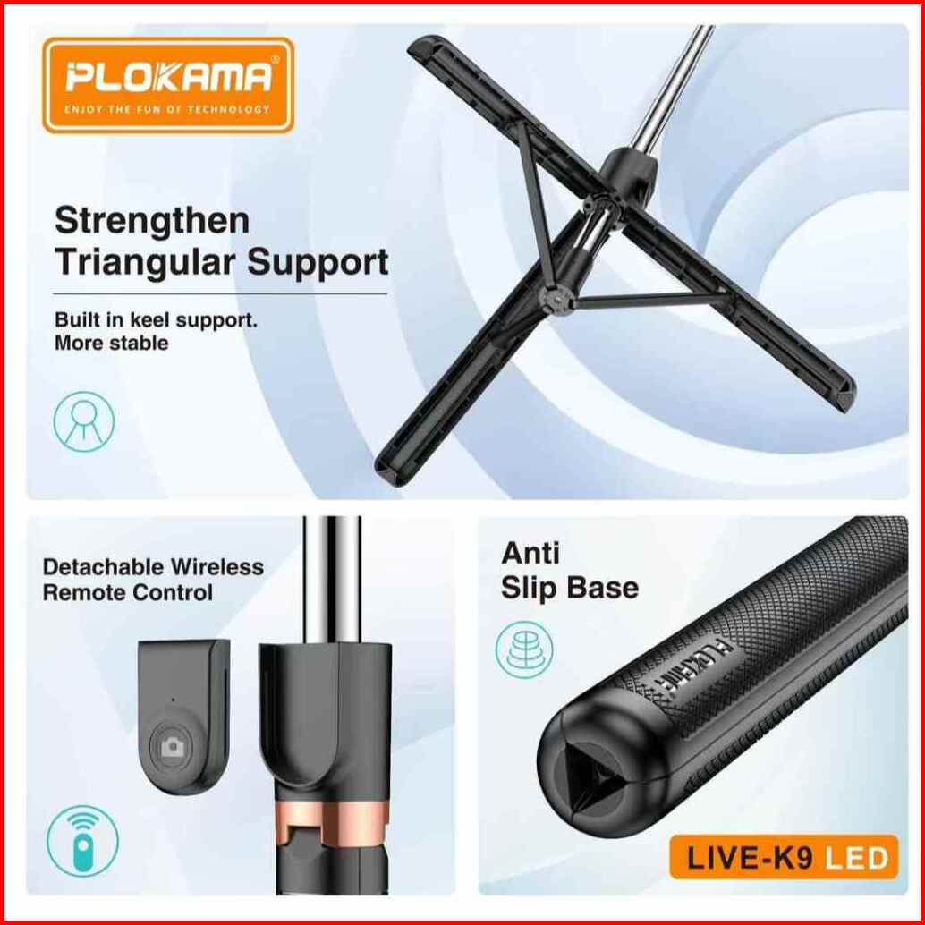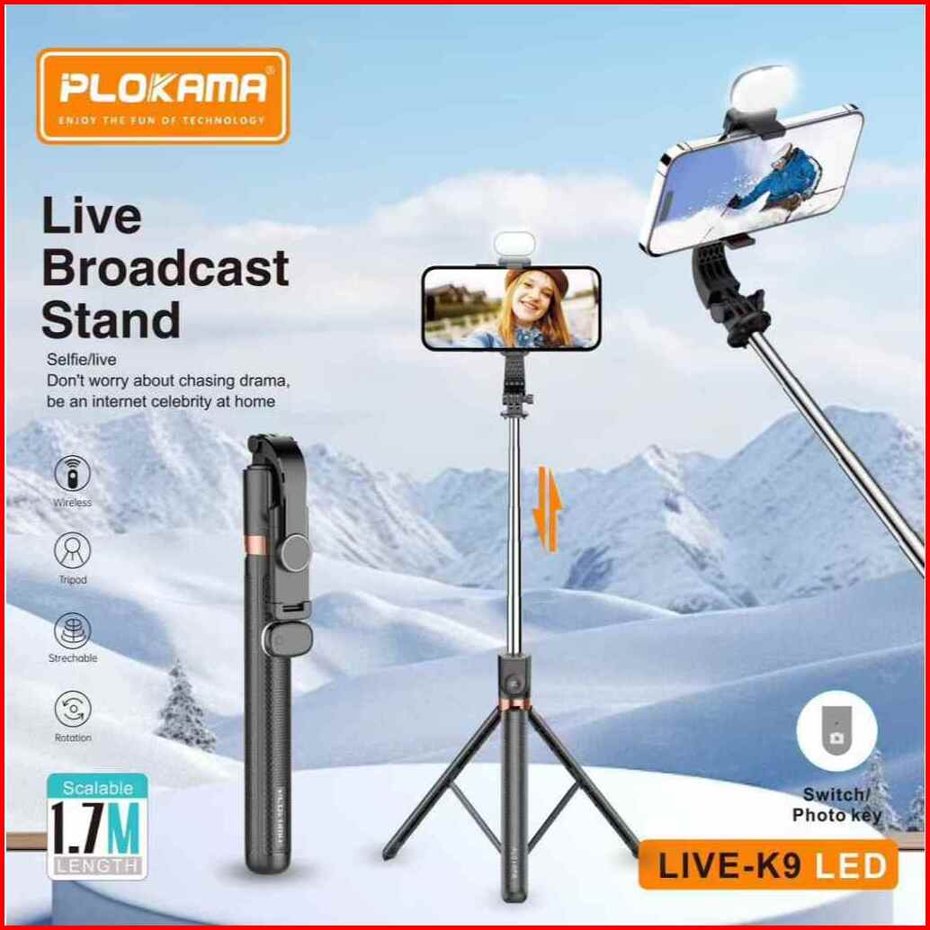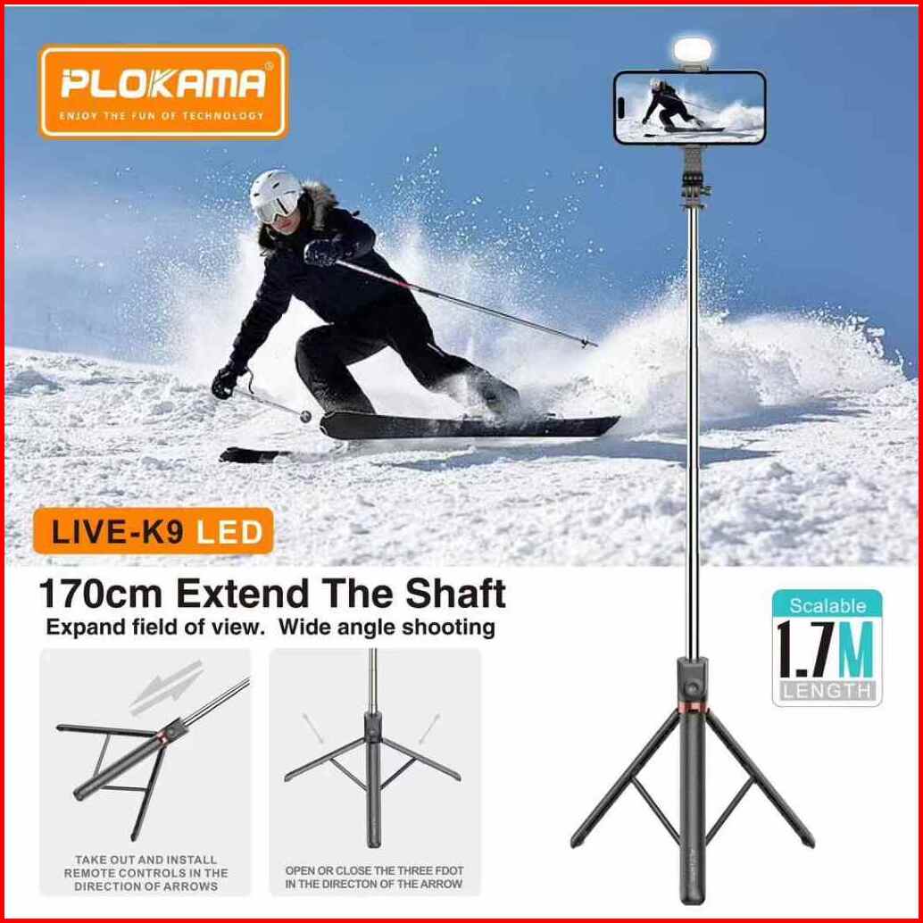 Plokama K9 Led Tongsis Tripod Bluetooth Selfie Stick 4 In 1 Led Lampu Remote Multifungsi 3 In 1 170cm 160cm 1.7 Meter Wi