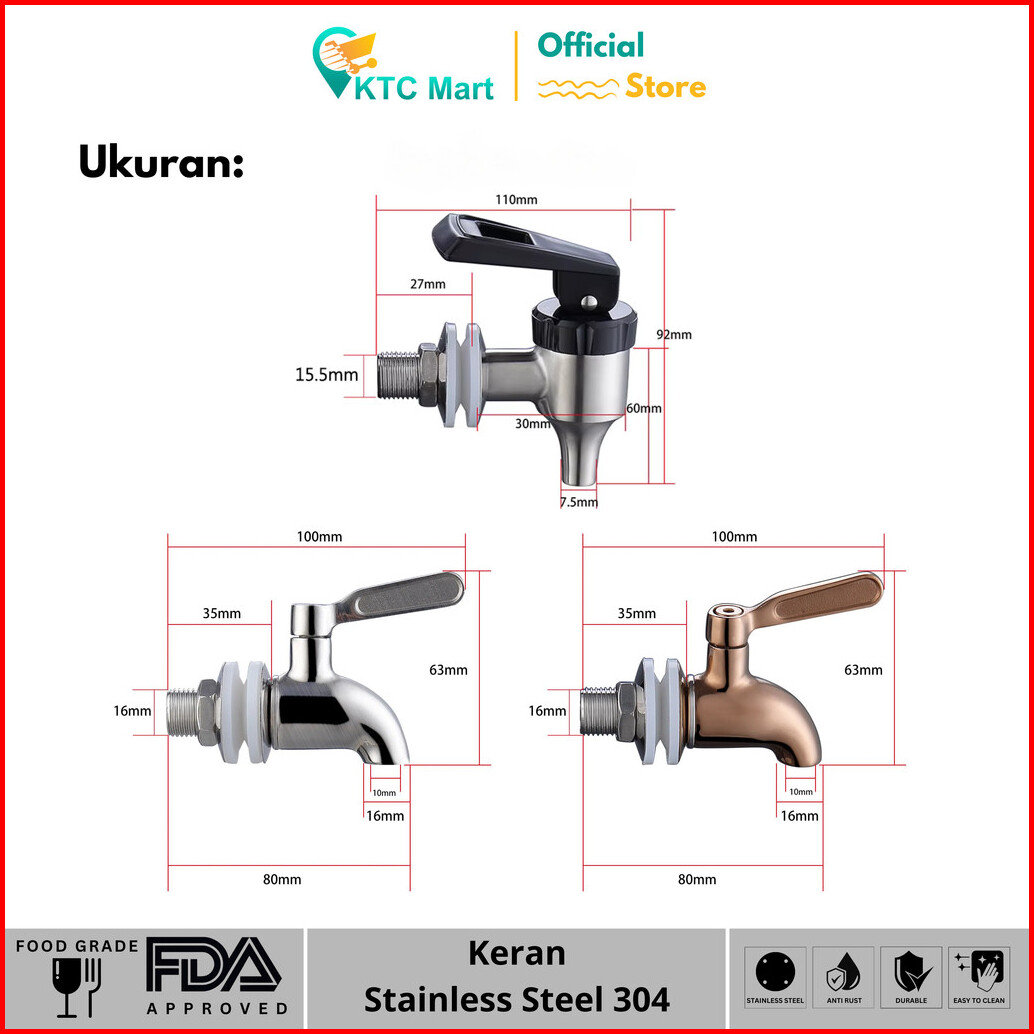 Keran Boiler Stainless Dispenser Air Kran Air Panas Kran Water Dispenser Water Jug Milktea Kran Jus