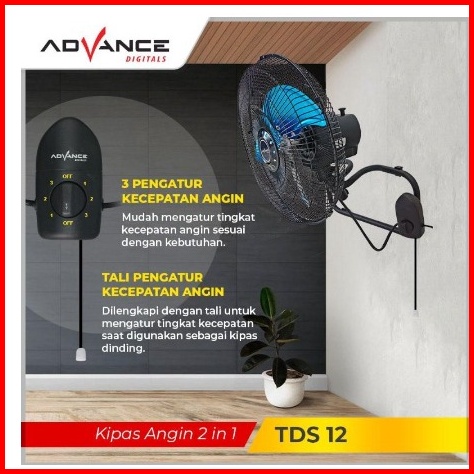 Advance Tds 12 Tds 1205 Kipas Angin 12 Inch Tornado Meja Dinding Desk Wall Fan 2in1 3 Baling 5 Baling