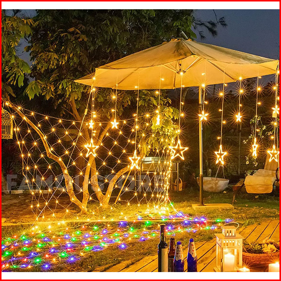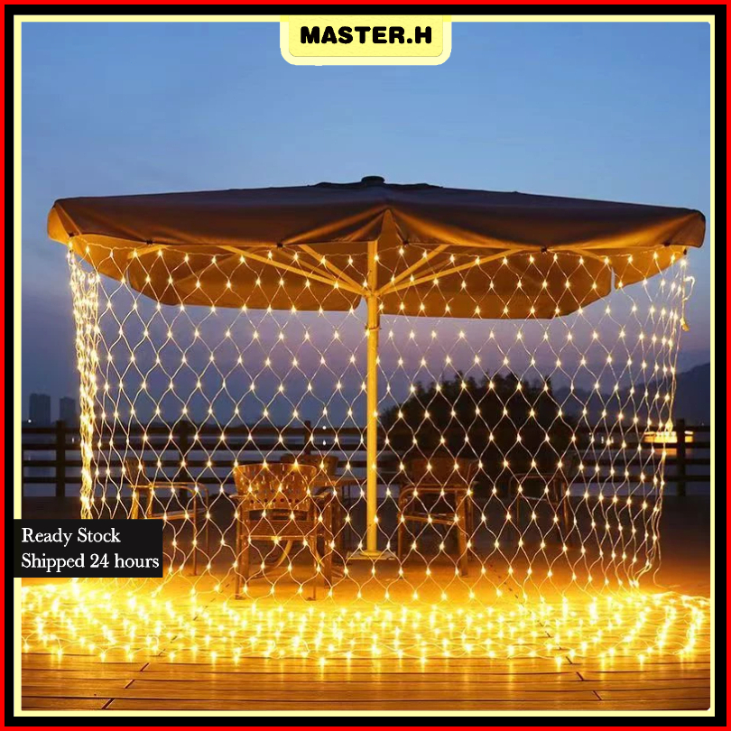 Lampu Natal Jala Led Warm White Dan White Tumblr Light Jala Dekorasi Taman Cafe Lampu Jaring Pesta