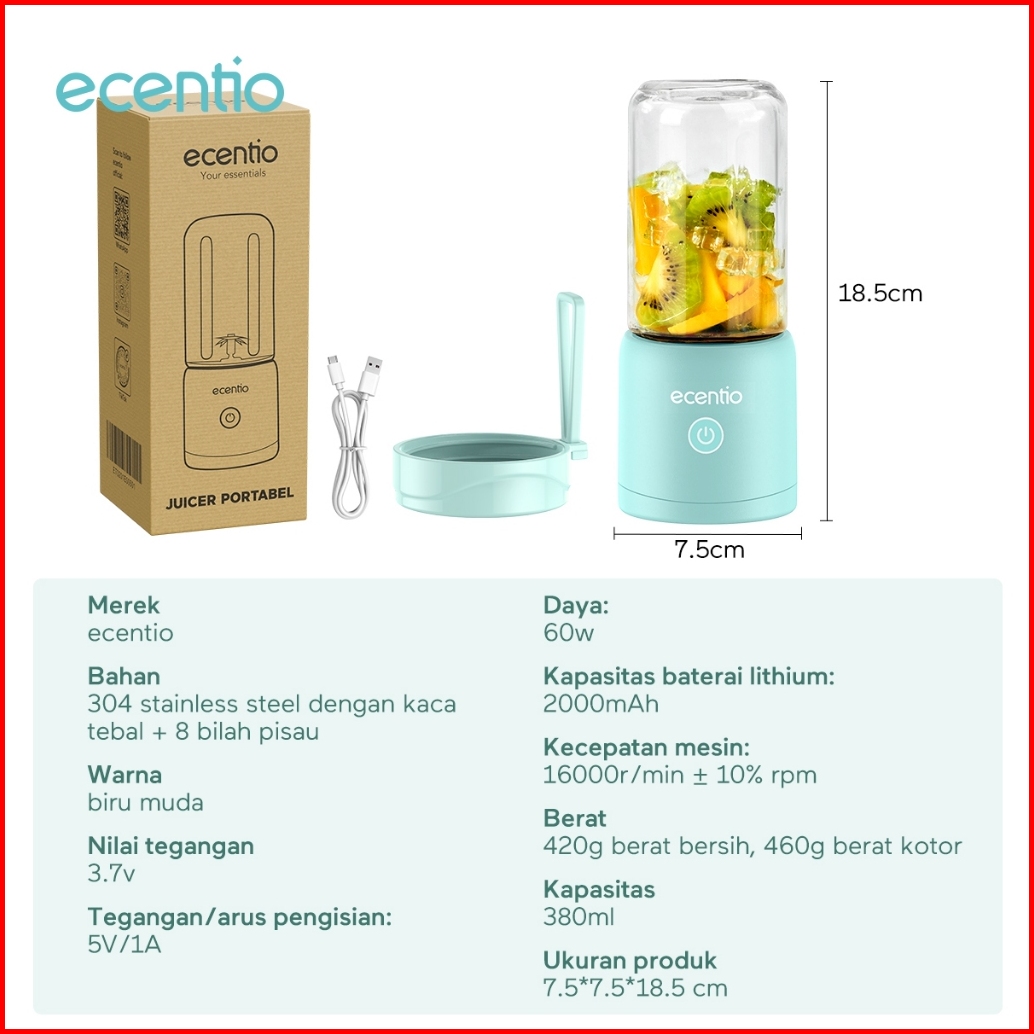 Exclusiveecentio Foodi Blender Juicer Portable 380ml Usb Mini Juicer Multifungsi 8 Mata Pisau Kaca Menebal Cangkir