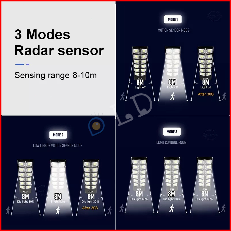 1500w Lampu Jalan Tenaga Matahari Lampu Solar Lampu 3 Modes Motion Sensor Suitable For Garden Courtyard Solar Cell Lampu