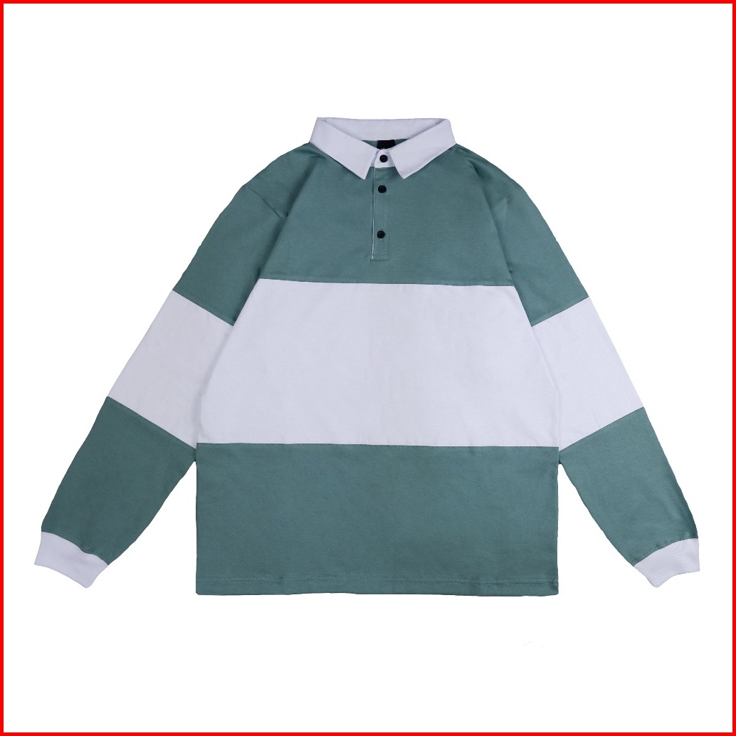 Pollac Rugby Tshirt Kaos Kerah Lengan Panjang Kombinasi Warna Greenmn