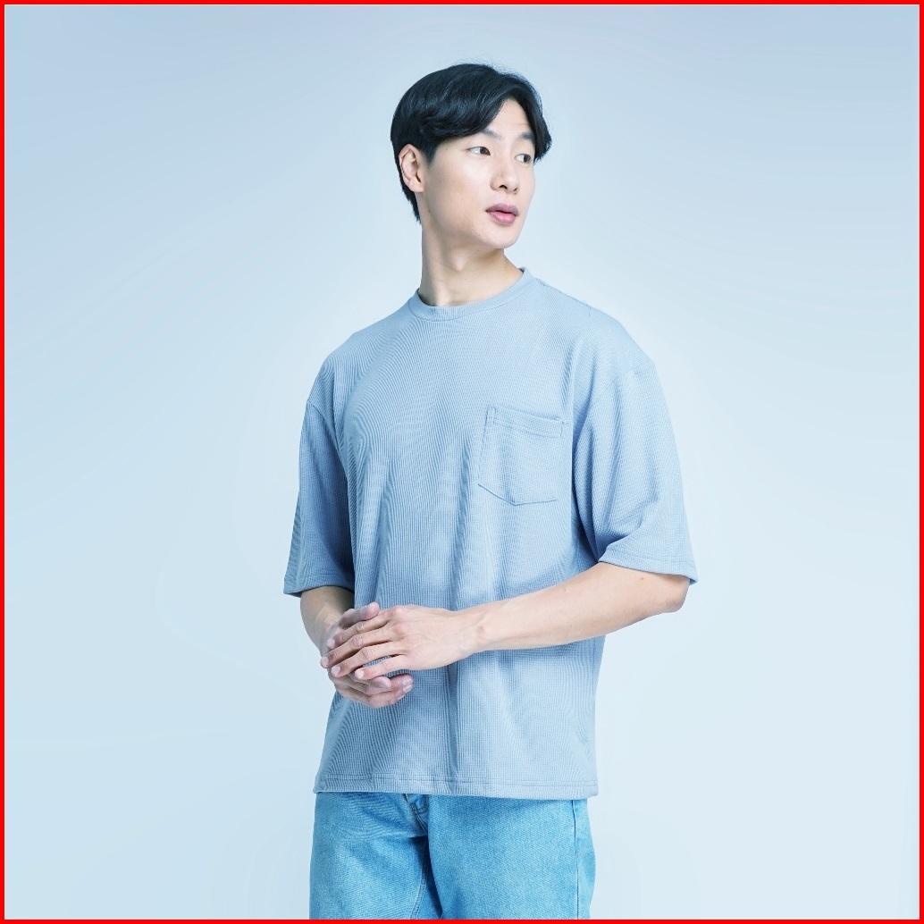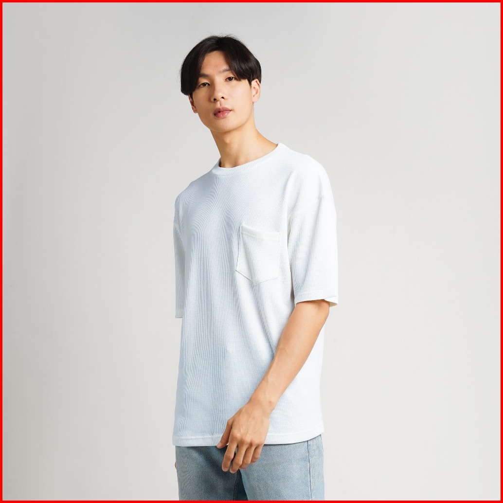 T-shirt Waffle Oversized Pocked Unisex Putih Bluish L Kaos Oversize Pria Dan Wanita L Pollac Edition