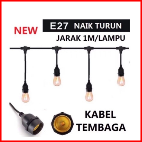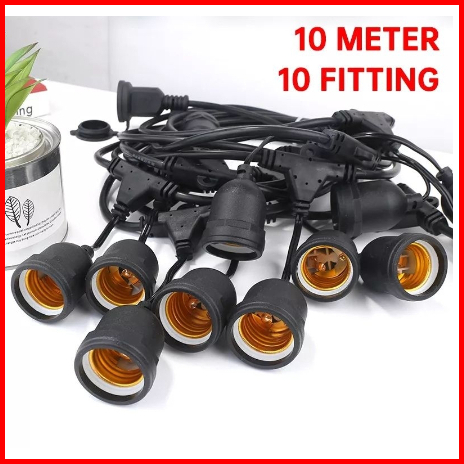 Kabel Fitting Lampu Gantung E27 10 Meter 10 Fitting 10 Meter 10 Fitting Outdoor Taman Waterproof